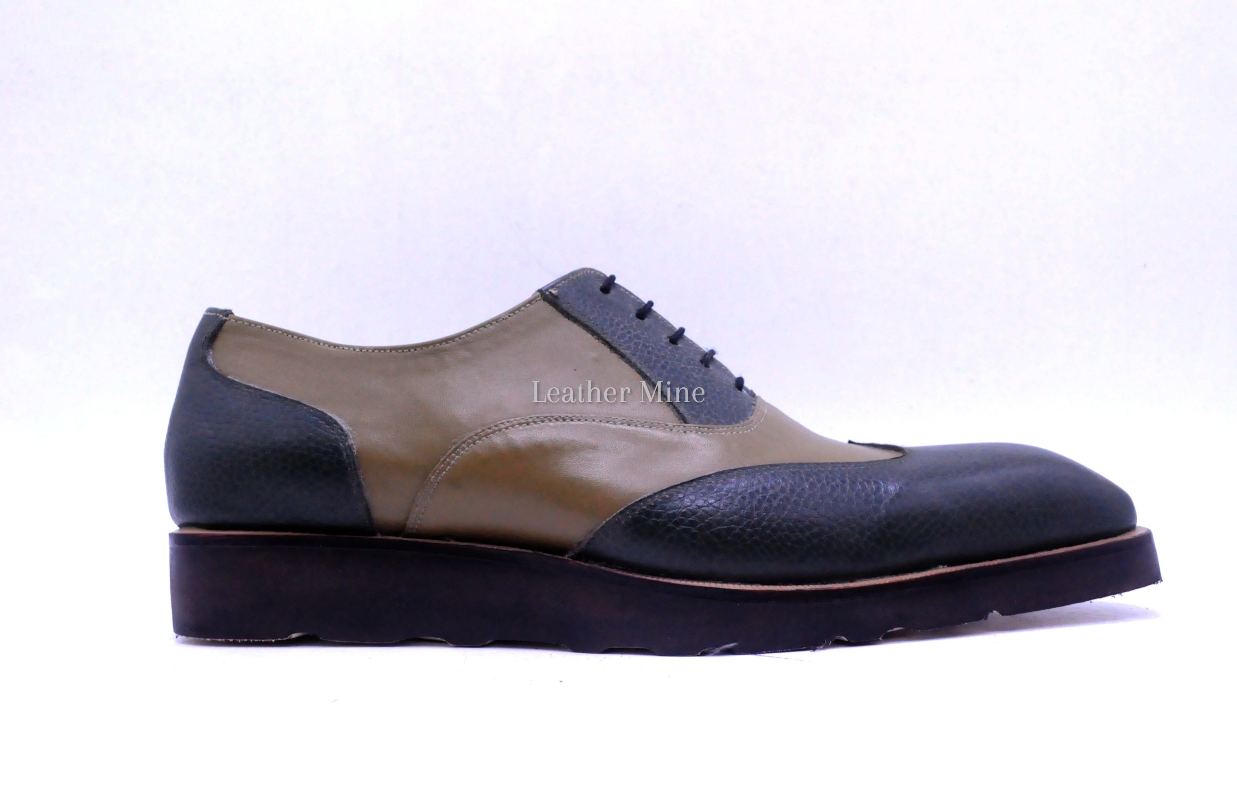 Leather Dress Shoes Men's Handmade Green Wingtip Oxfords Formal Shoes