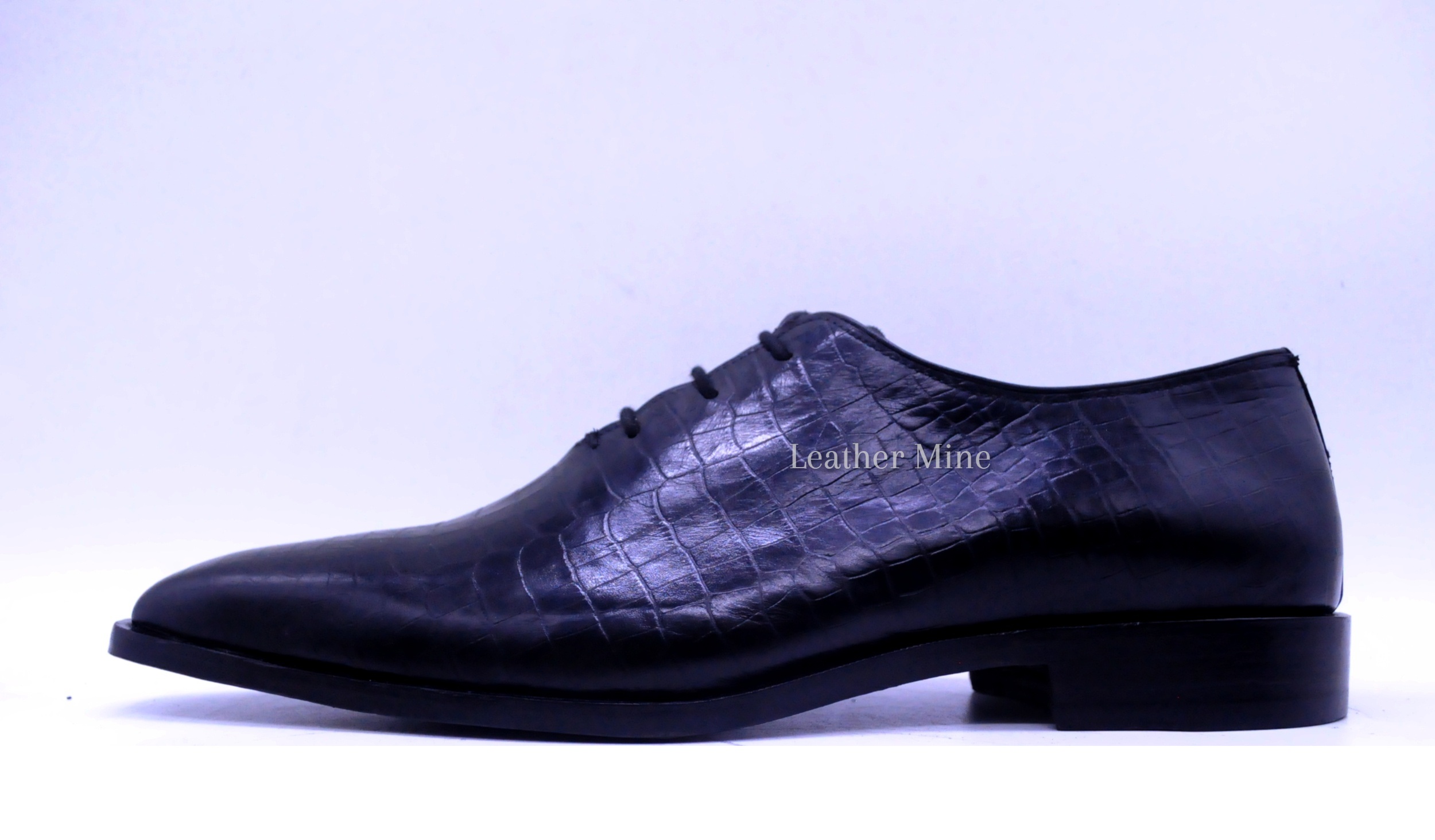 Handmade Black Crocodile Oxfords Dress Shoes, Genuine Leather Formal Shoes