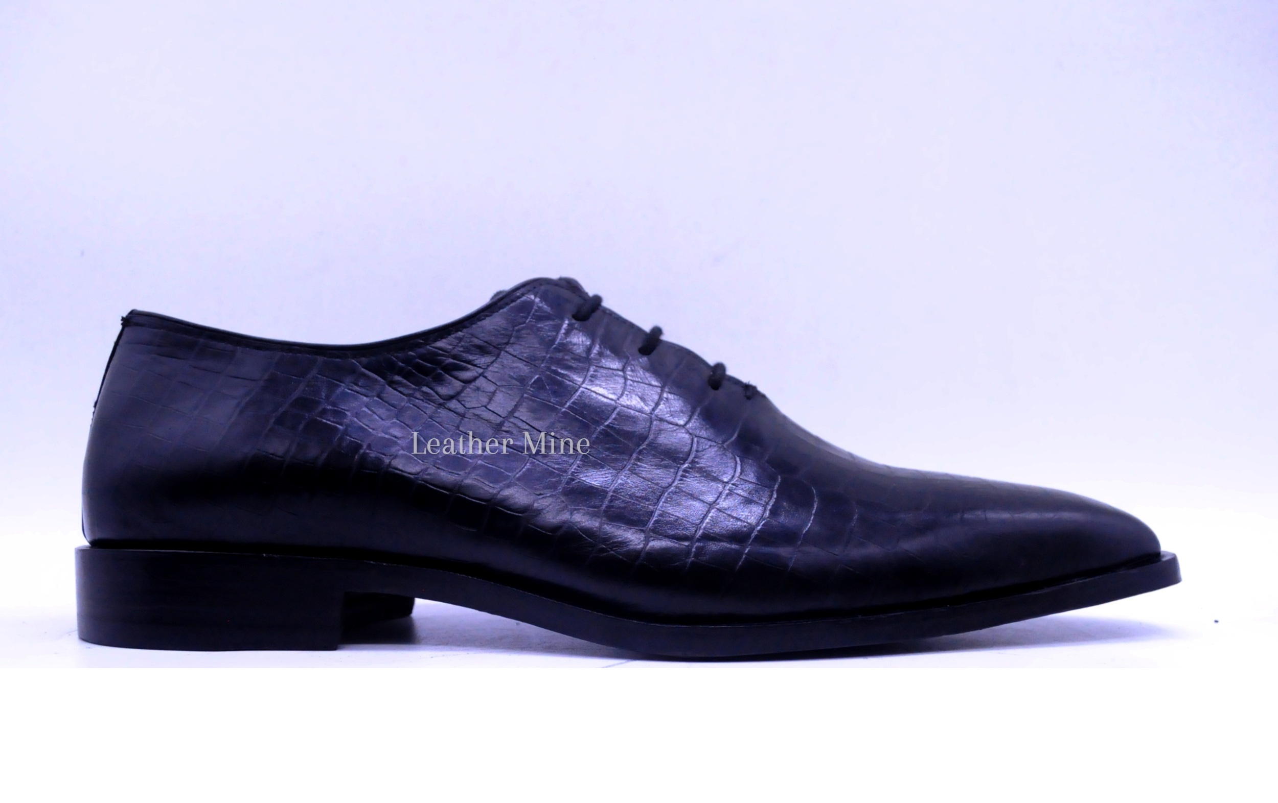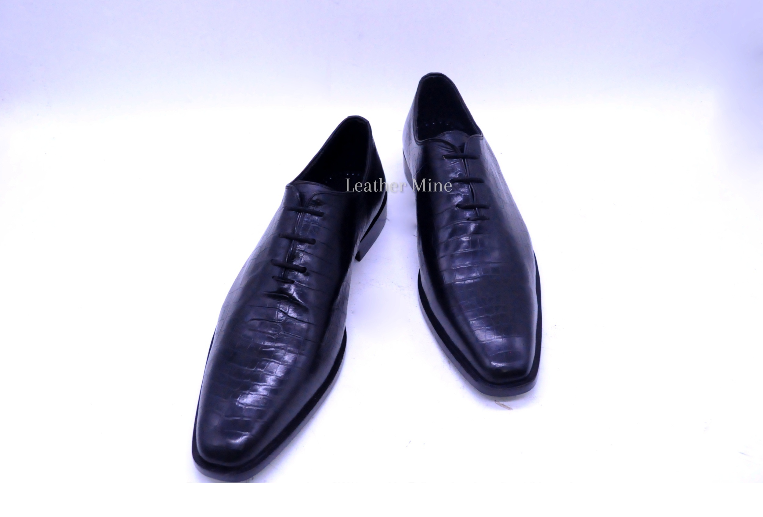 Leather Dress Shoes Men's Handmade Black Crocodile Oxfords Formal Shoes