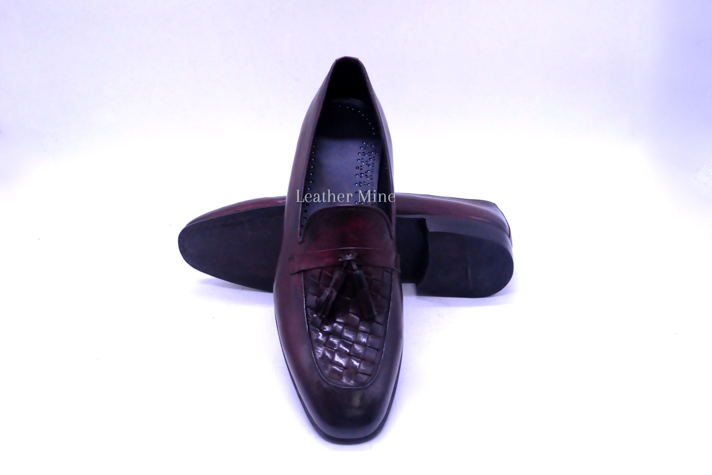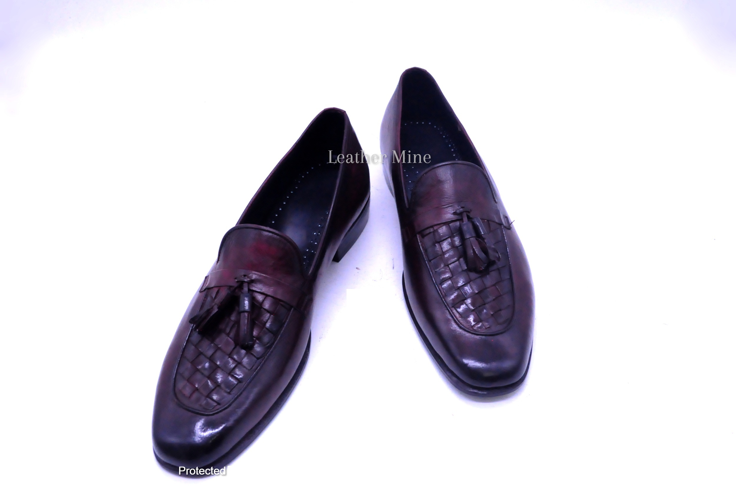 Leather Dress Shoes Men's Handmade Ox Blood Patina Loafers Formal Shoes