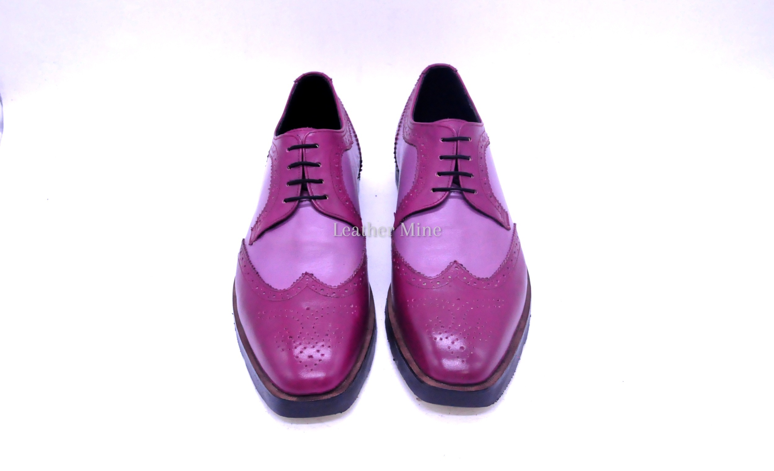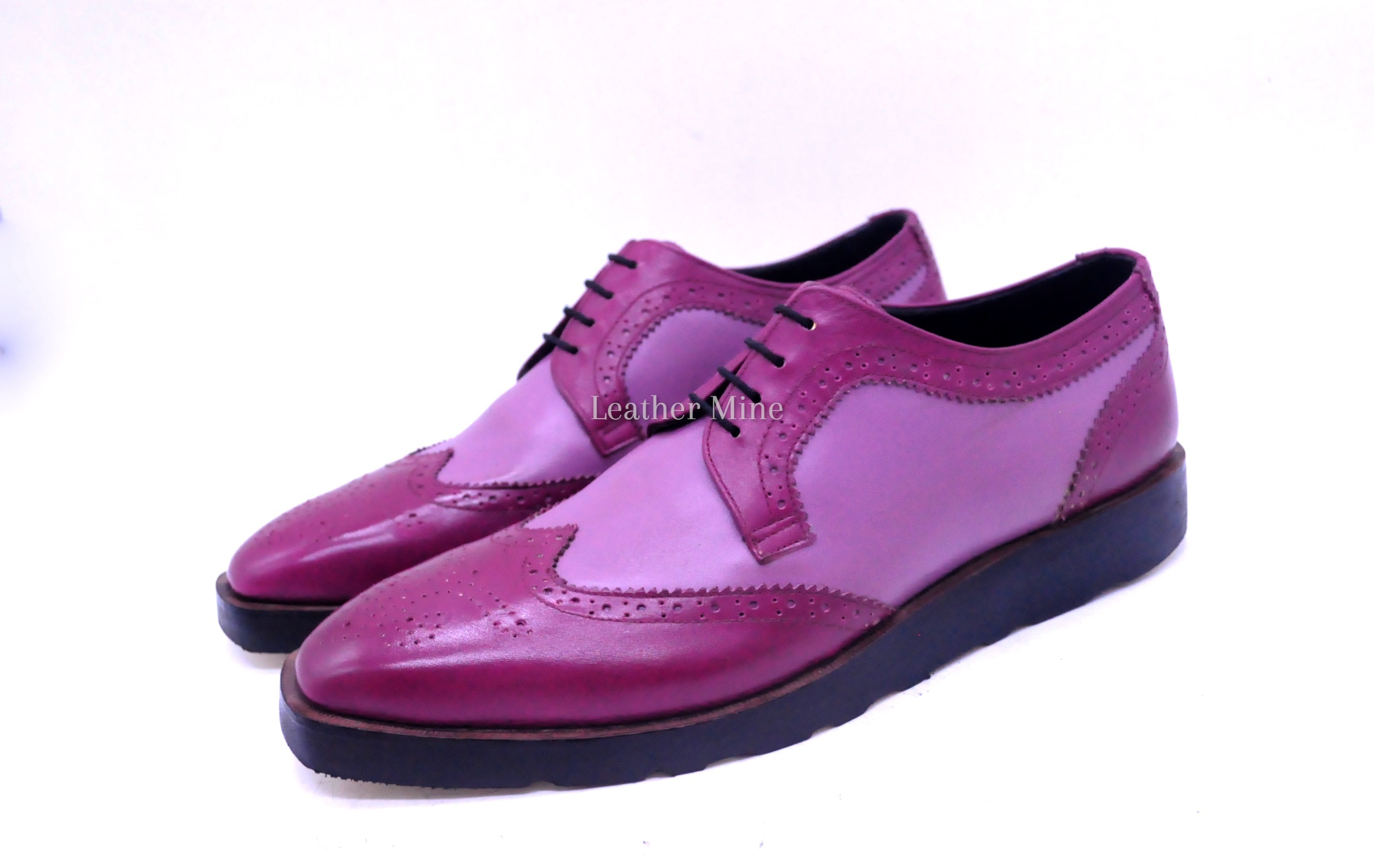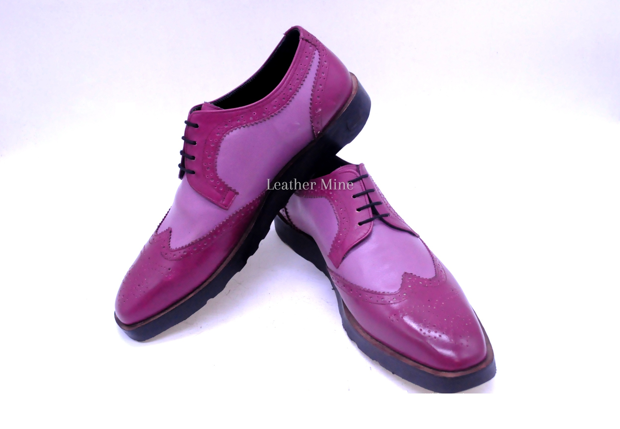 Men's Handmade Pink Wingtip Leather Oxfords Formal Custom Made Shoes