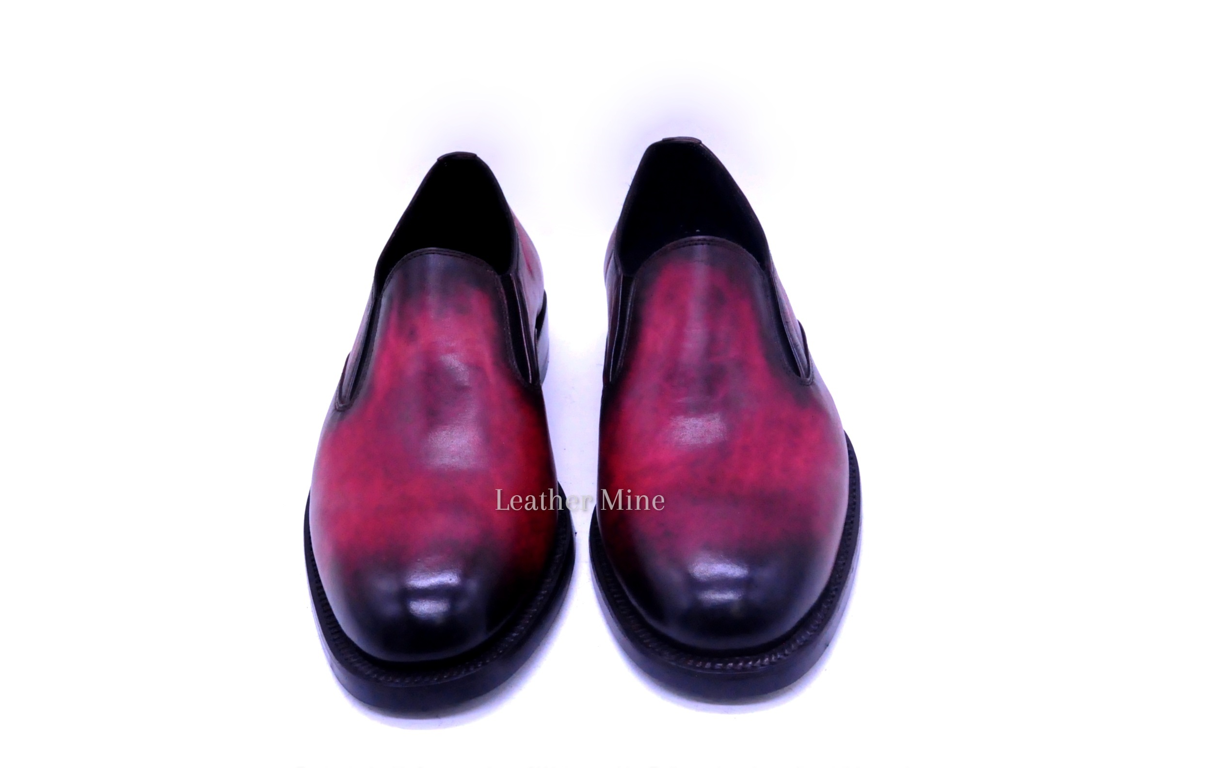 Leather Burgundy Patina Loafers shoes Men's, Handmade Formal Custom Shoes