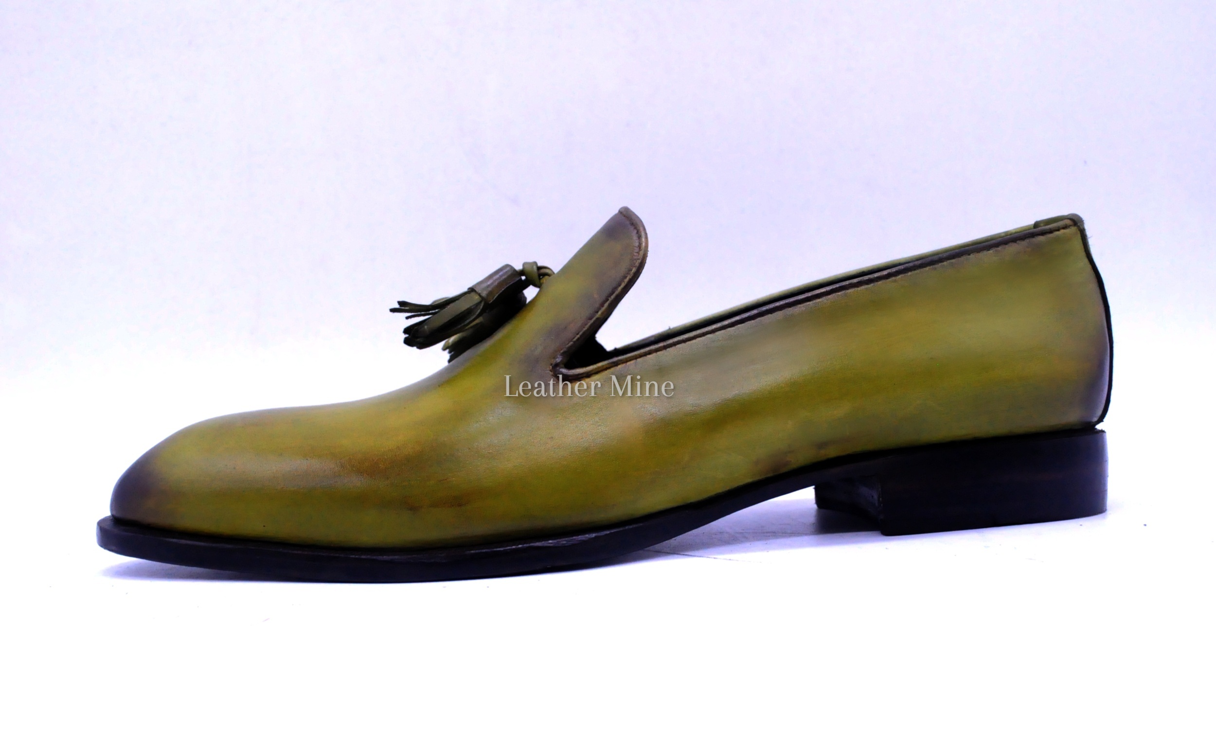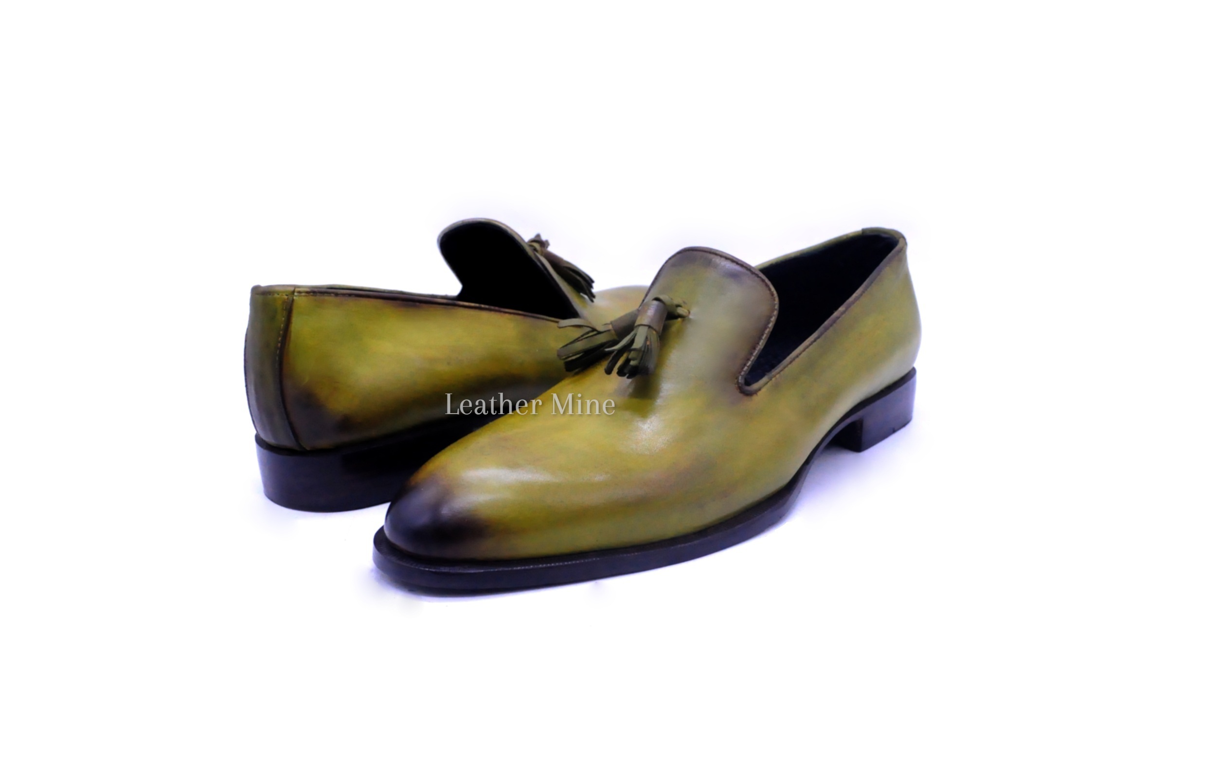 Leather Dress Shoes Men's Handmade Green Patina Loafers Formal Shoes