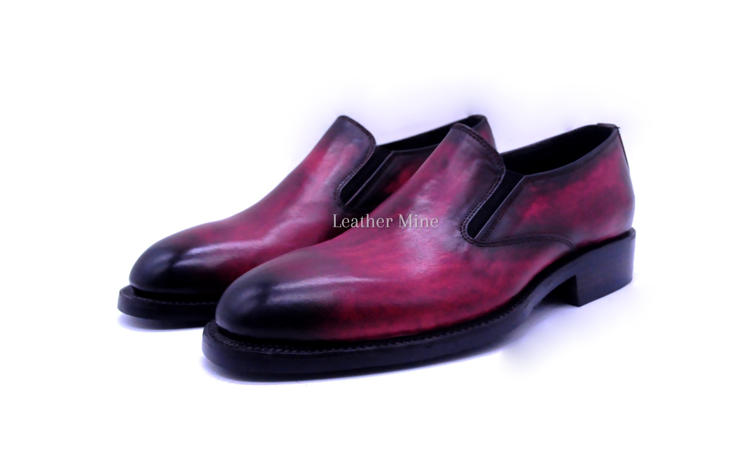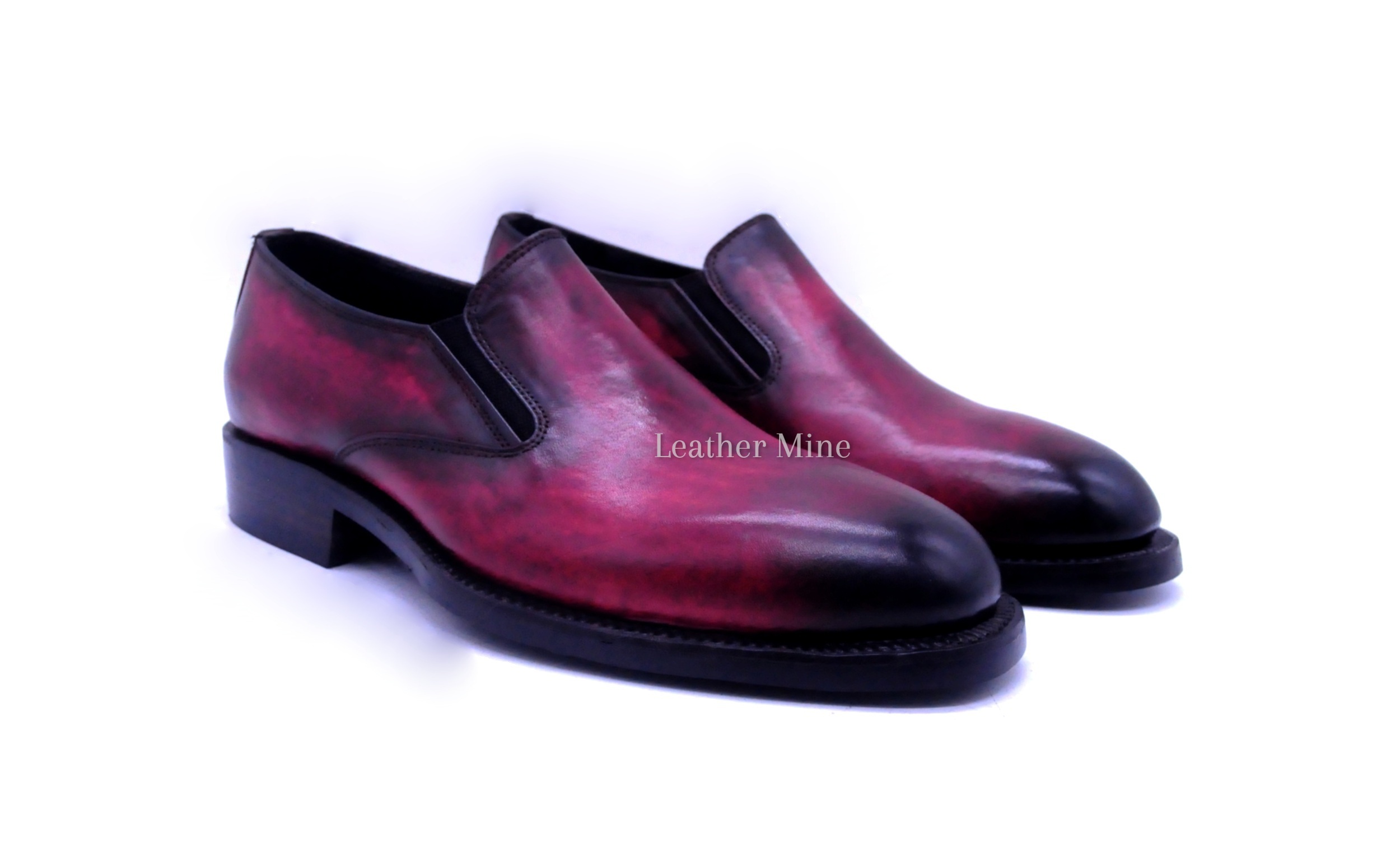 Handmade Burgundy Patina Loafers Dress Shoes, Genuine Leather Formal Shoes
