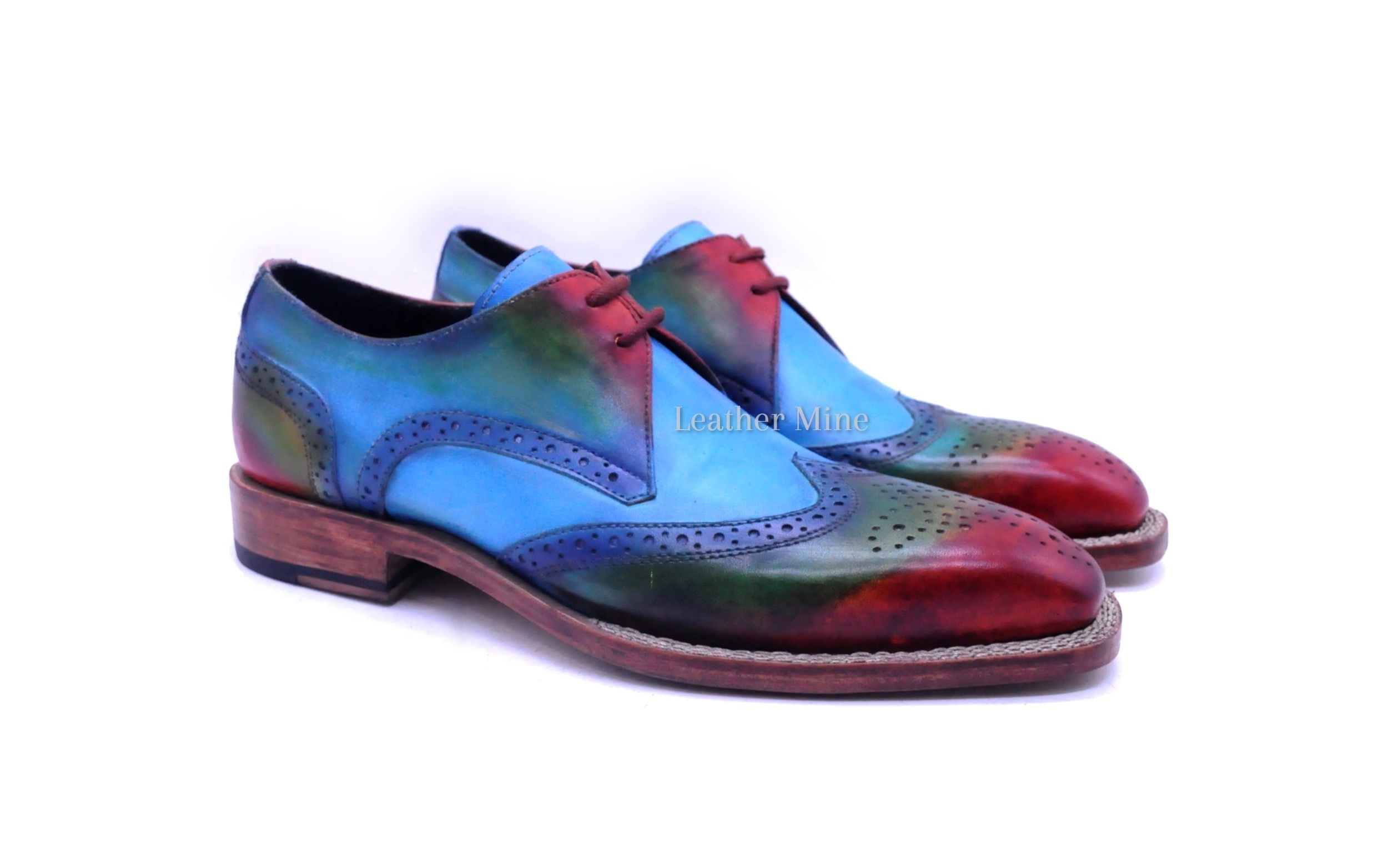 Leather Blue Patina Wingtip Oxfords shoes Men's, Handmade Formal Shoes