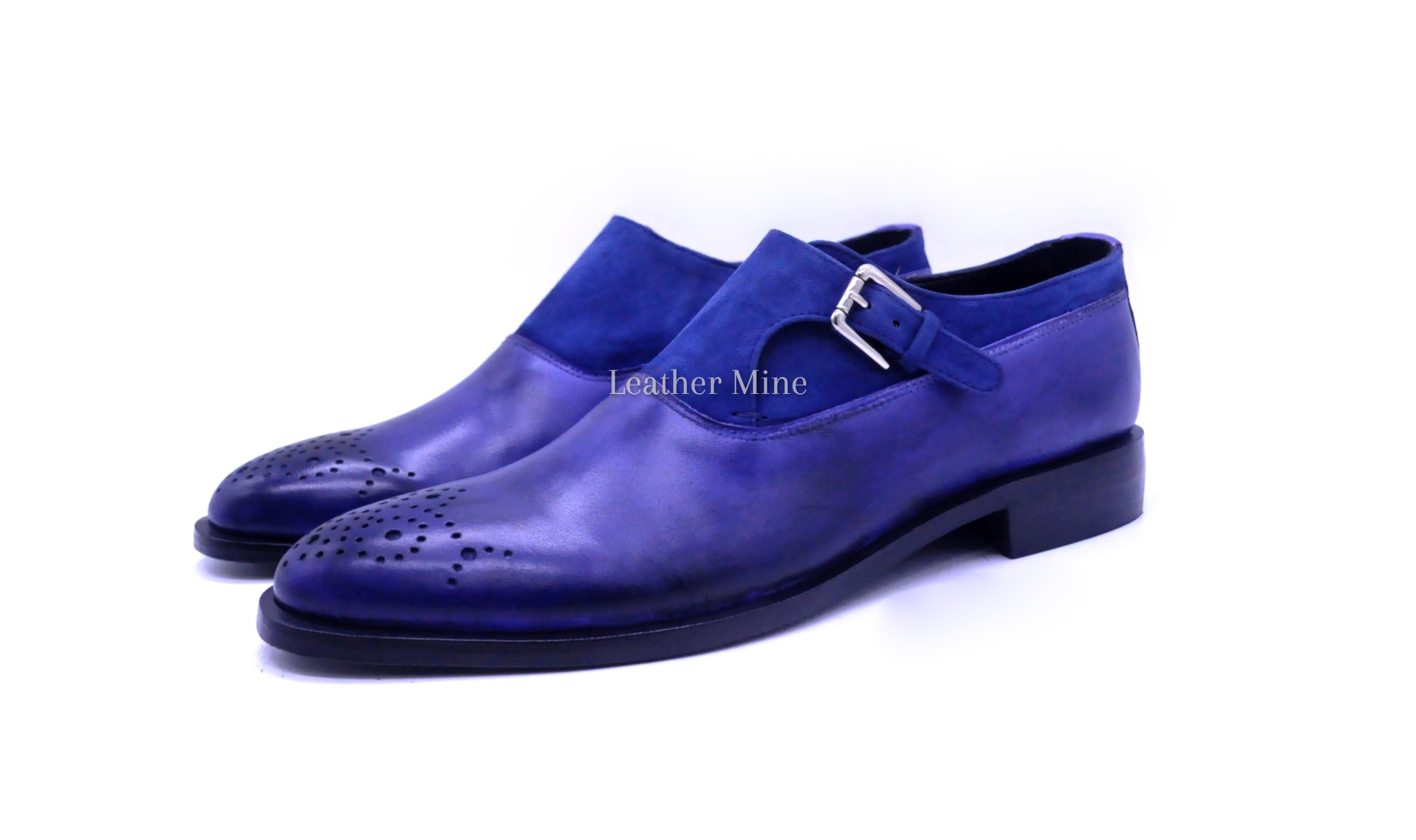 Handmade Blue Patina Monk Strap Dress Shoes, Genuine Leather Formal Shoes
