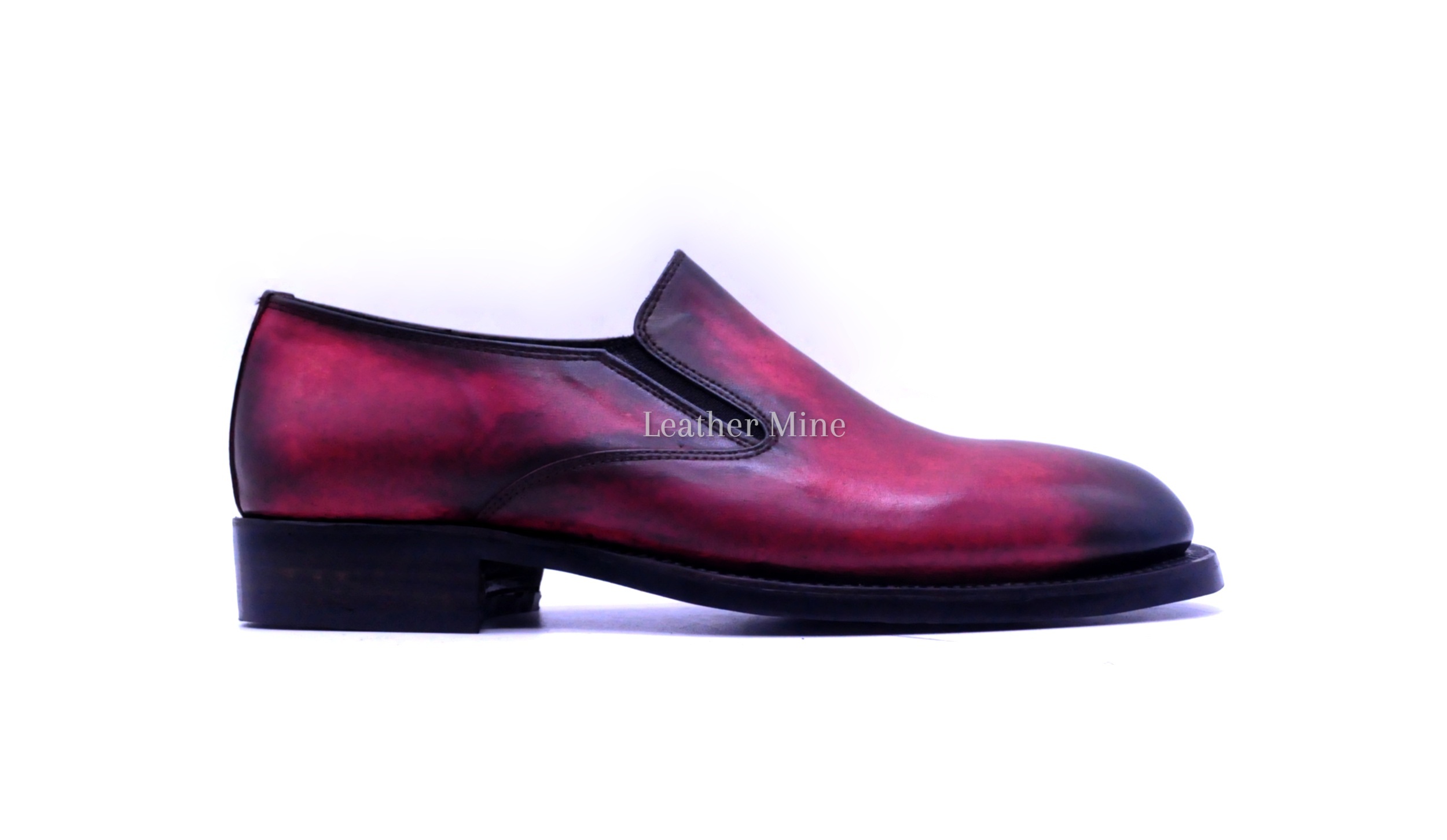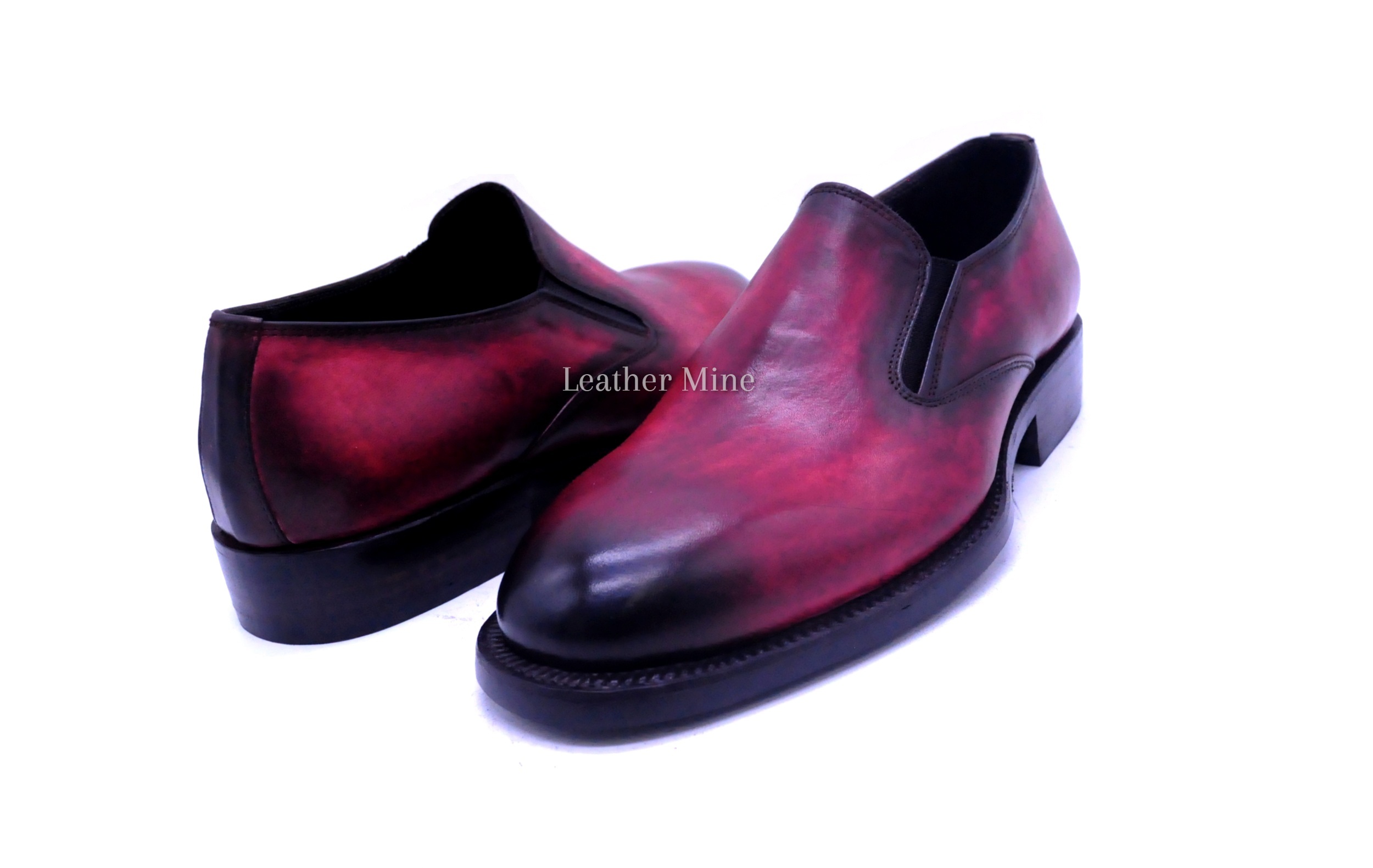 Leather Dress Shoes Men's Handmade Burgundy Patina Loafers Formal Shoes