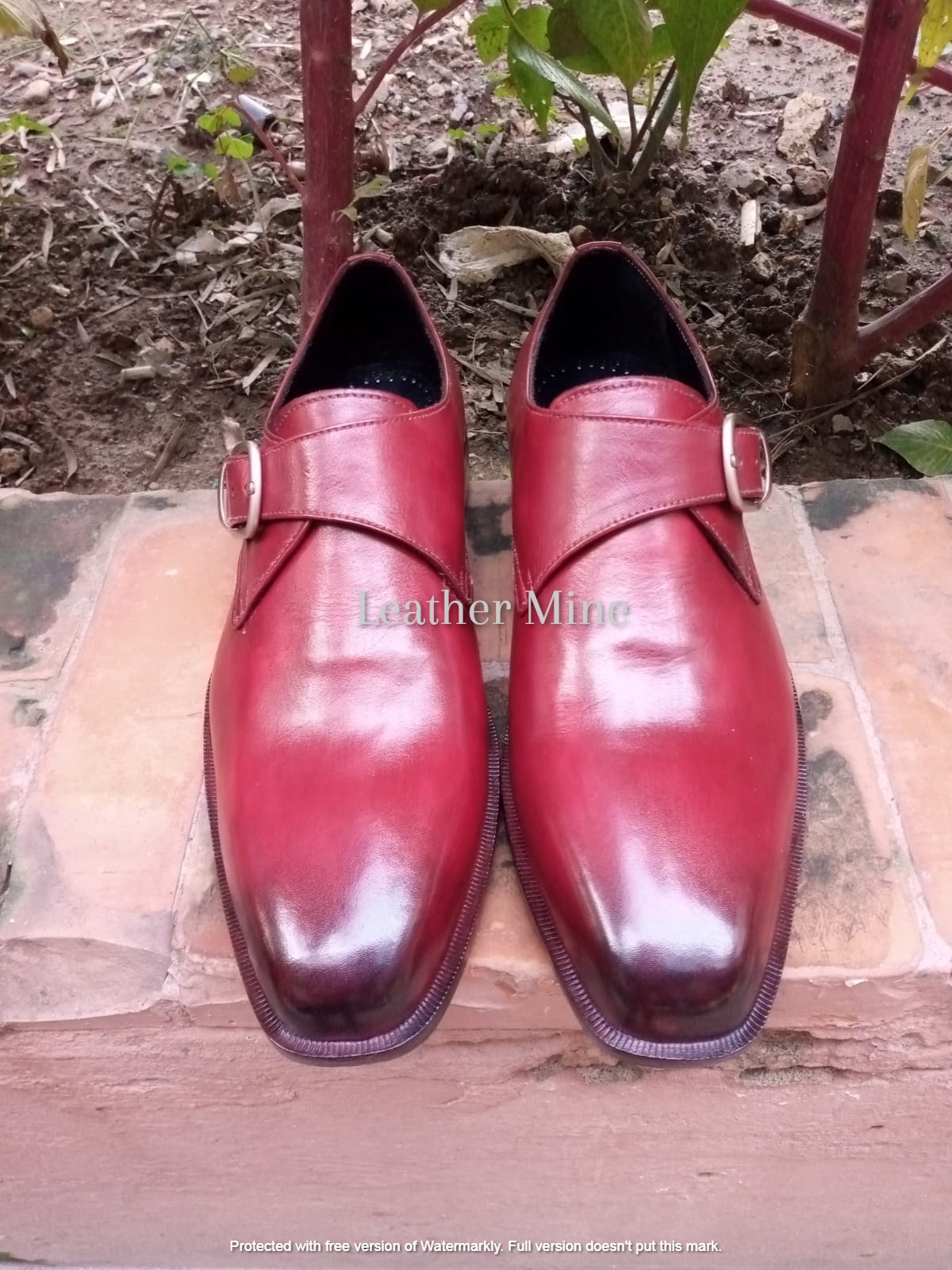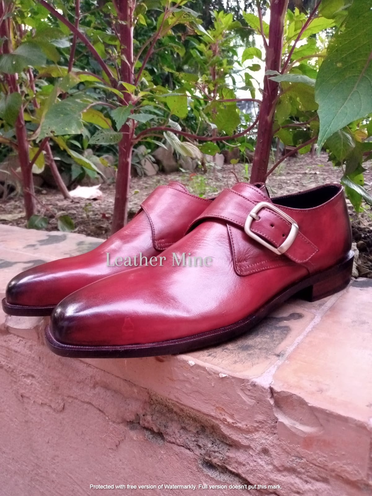 Leather Burgundy Patina Monk Strap shoes Men's, Handmade Formal Shoes