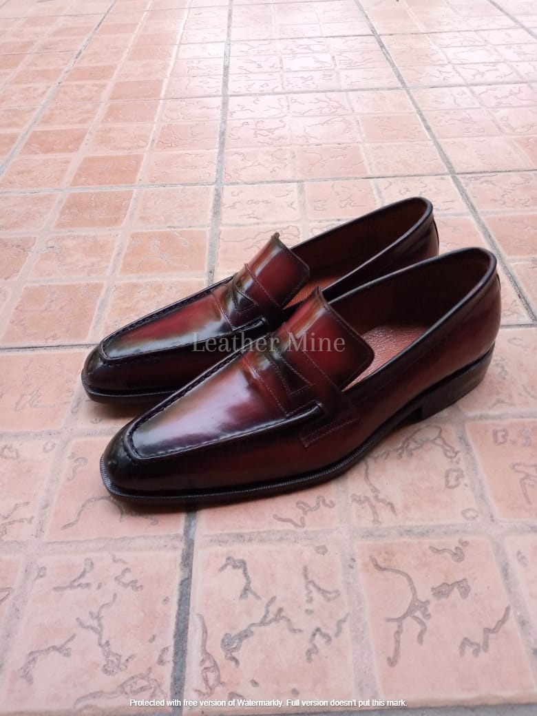 Leather Ox Blood Patina Loafers shoes Men's, Handmade Formal Shoes