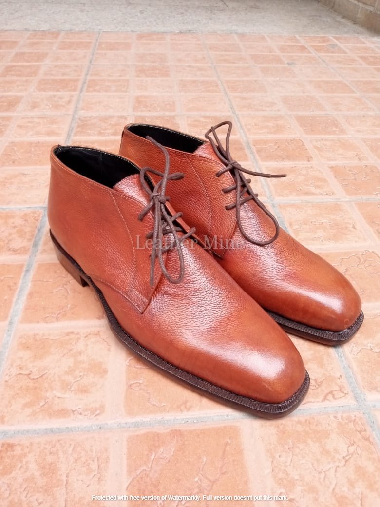 Leather Tan Grains Chukka Boots Men's, Handmade Formal Custom Boots