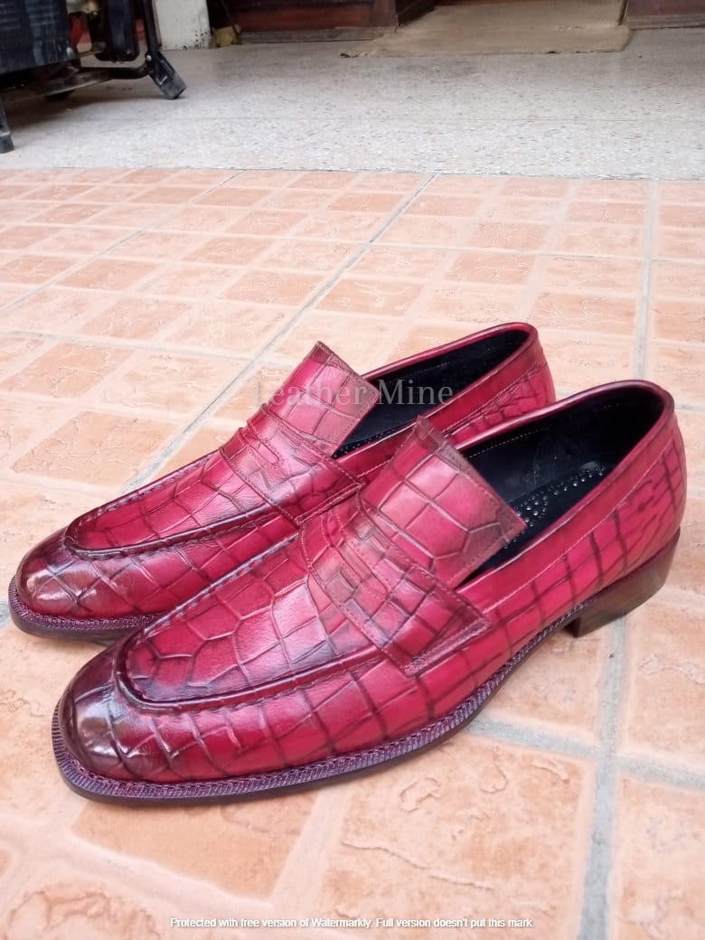 Handmade Ox Blood Crocodile Loafers Genuine Dress Leather Shoes
