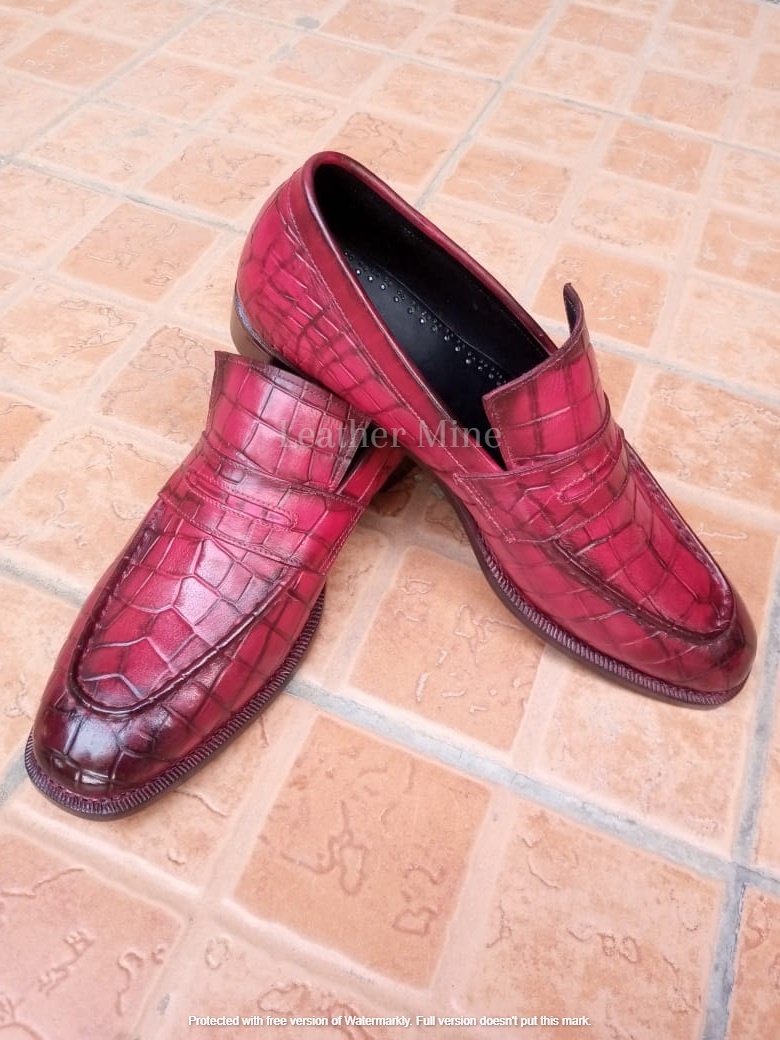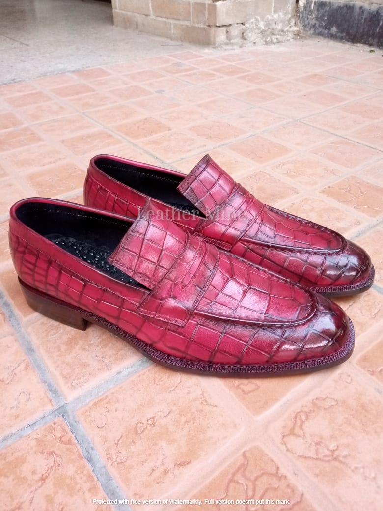 Leather Dress Shoes Men's Handmade Ox Blood Crocodile Loafers Shoes