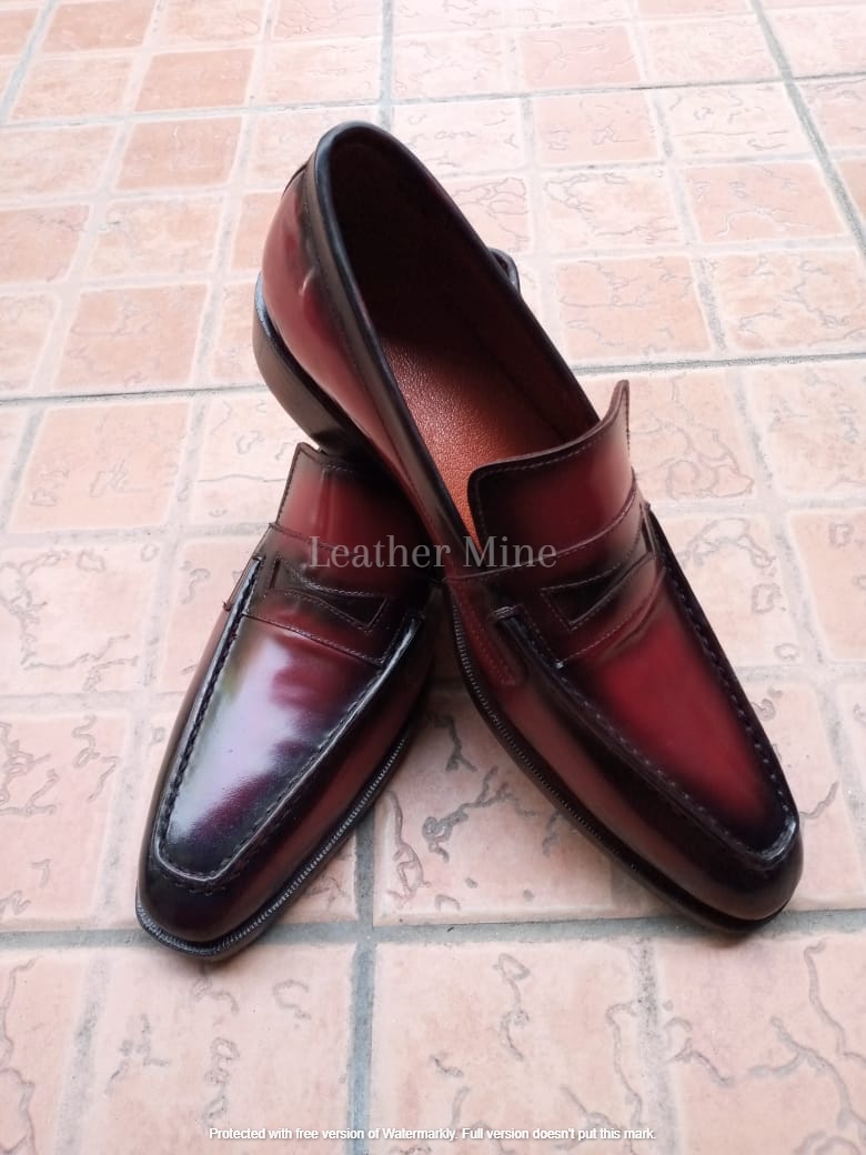 Handmade Ox Blood Patina Loafers Dress Shoes, Genuine Leather Shoes