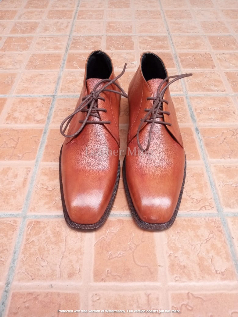 Men's Handmade Tan Grains Leather Chukka Formal Custom Made Boots