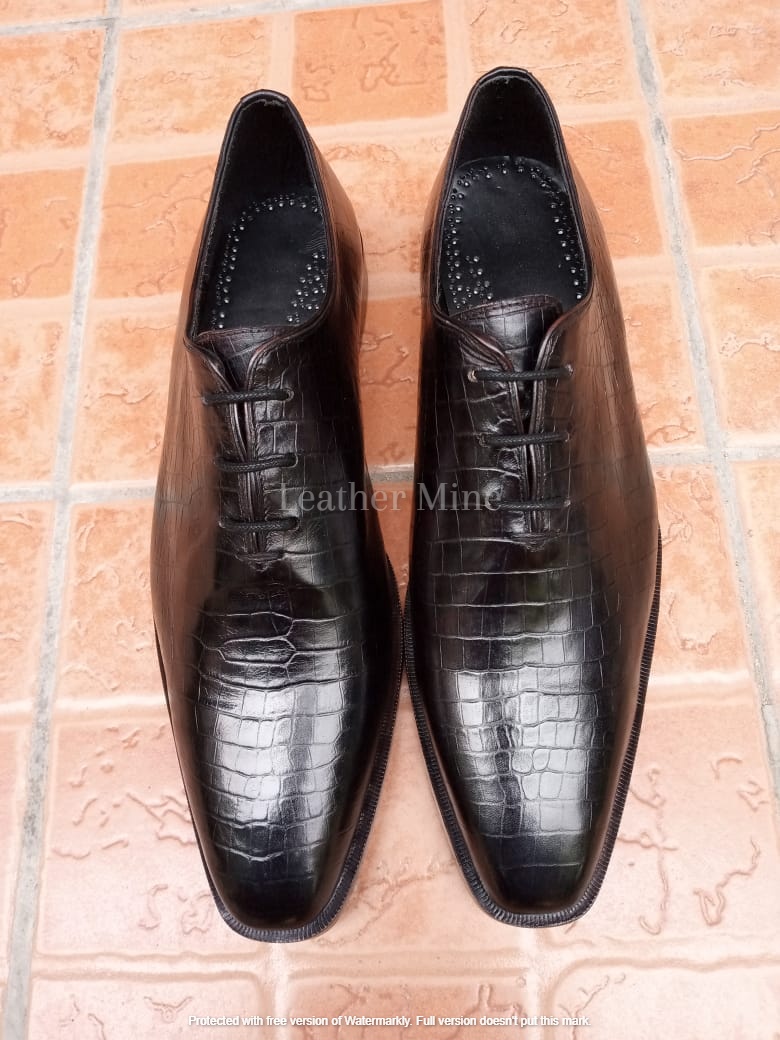 Oxfords Shoes Men, Handmade Black Crocodile Dress Shoes For Men