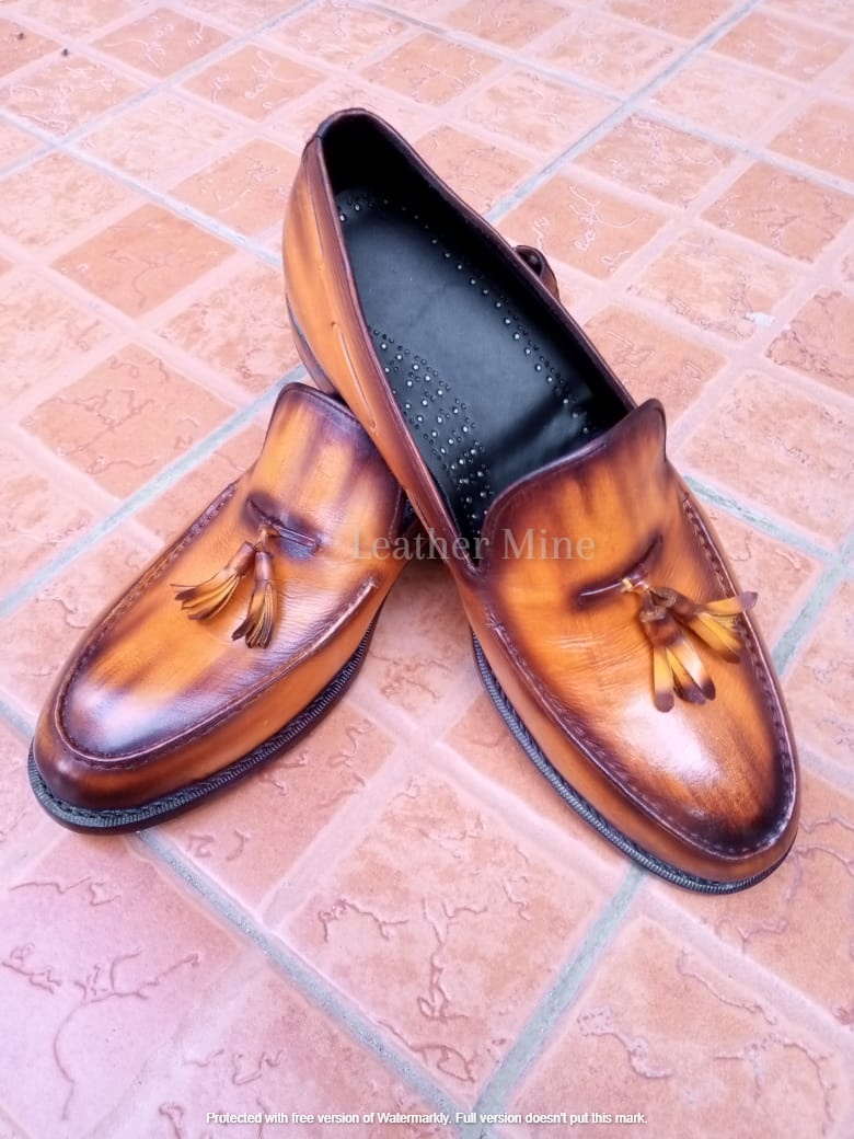 Leather Dress Shoes Men's Handmade Tan Patina Loafers Shoes