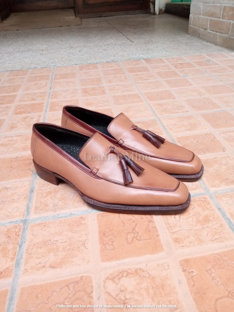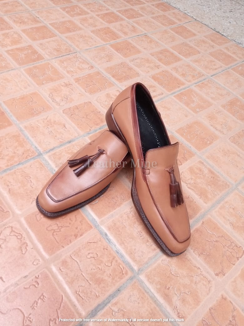 Leather Dress Shoes Men's Handmade Chestnut Loafers Shoes
