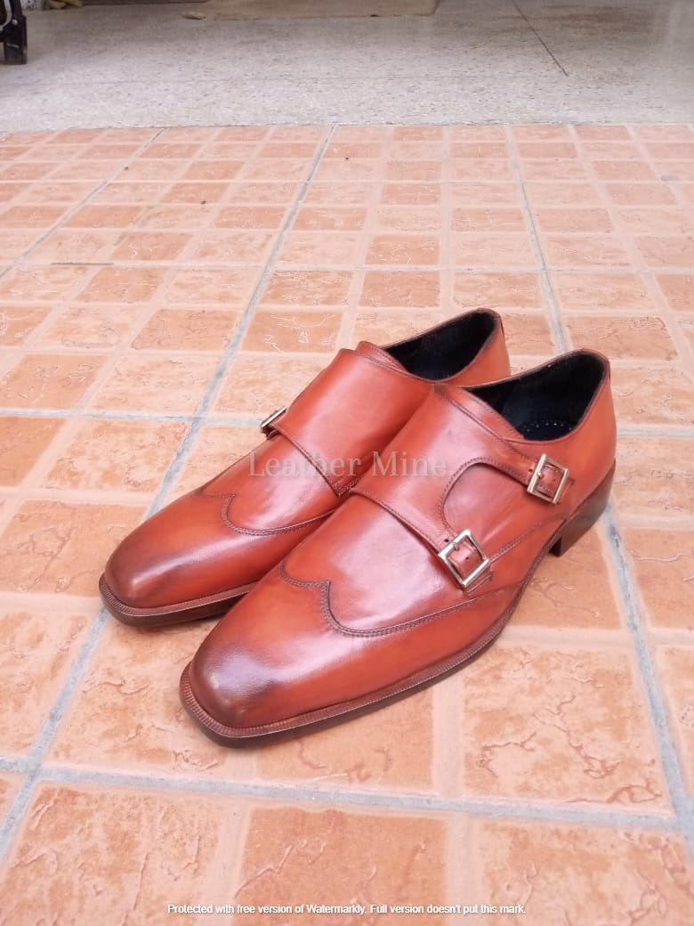 Tan Double Monk Shoes Men, Handmade Formal Shoes For Men