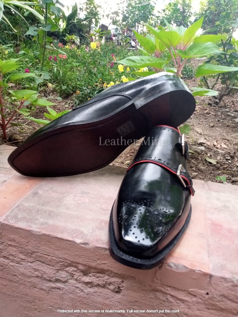 Leather Dress Shoes Men's Handmade Black Double Monk Shoes