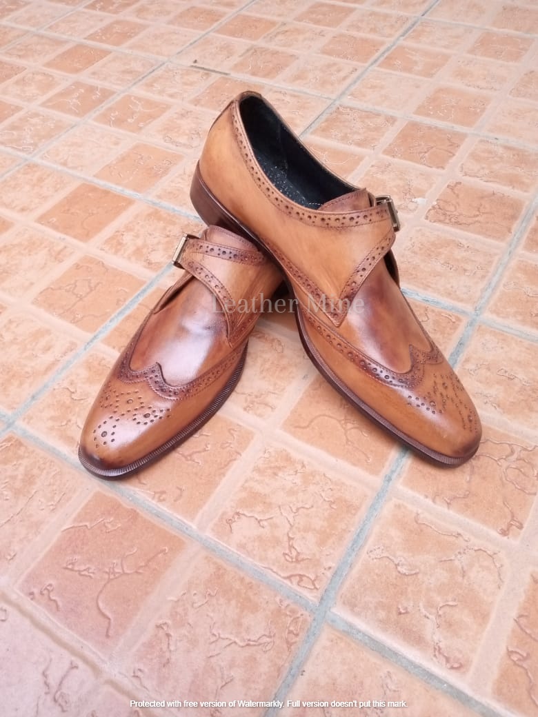 Tan Brogue Monk Shoes Men, Handmade Shoes For Men