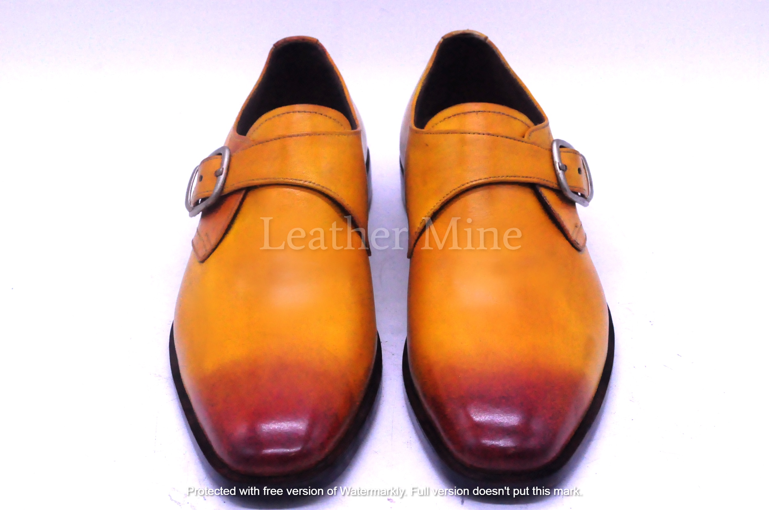 Leather Dress Shoes Men's Handmade Tan Patina Monk Shoes