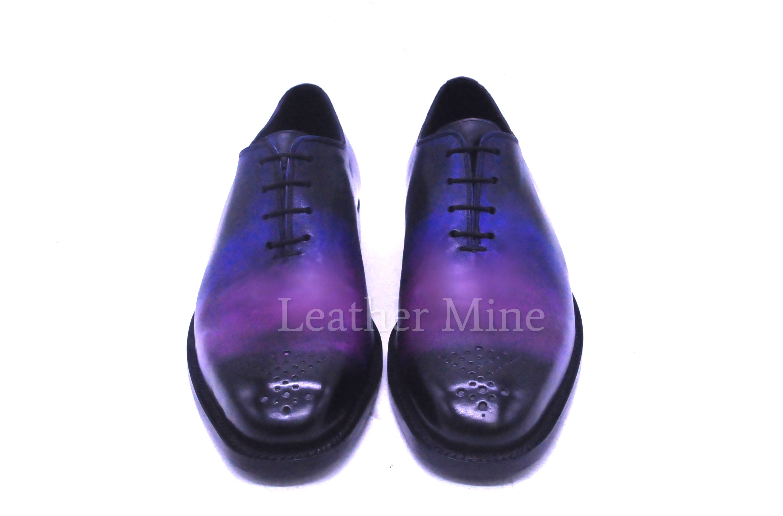 Leather Dress Shoes Men's Handmade Purple Patina Oxfords Shoes