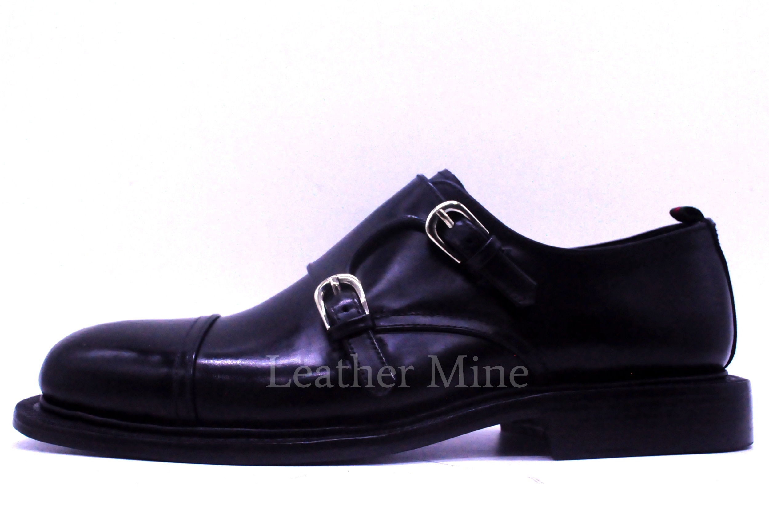 Leather Dress Shoes Men's Handmade Black Double Monk Shoes