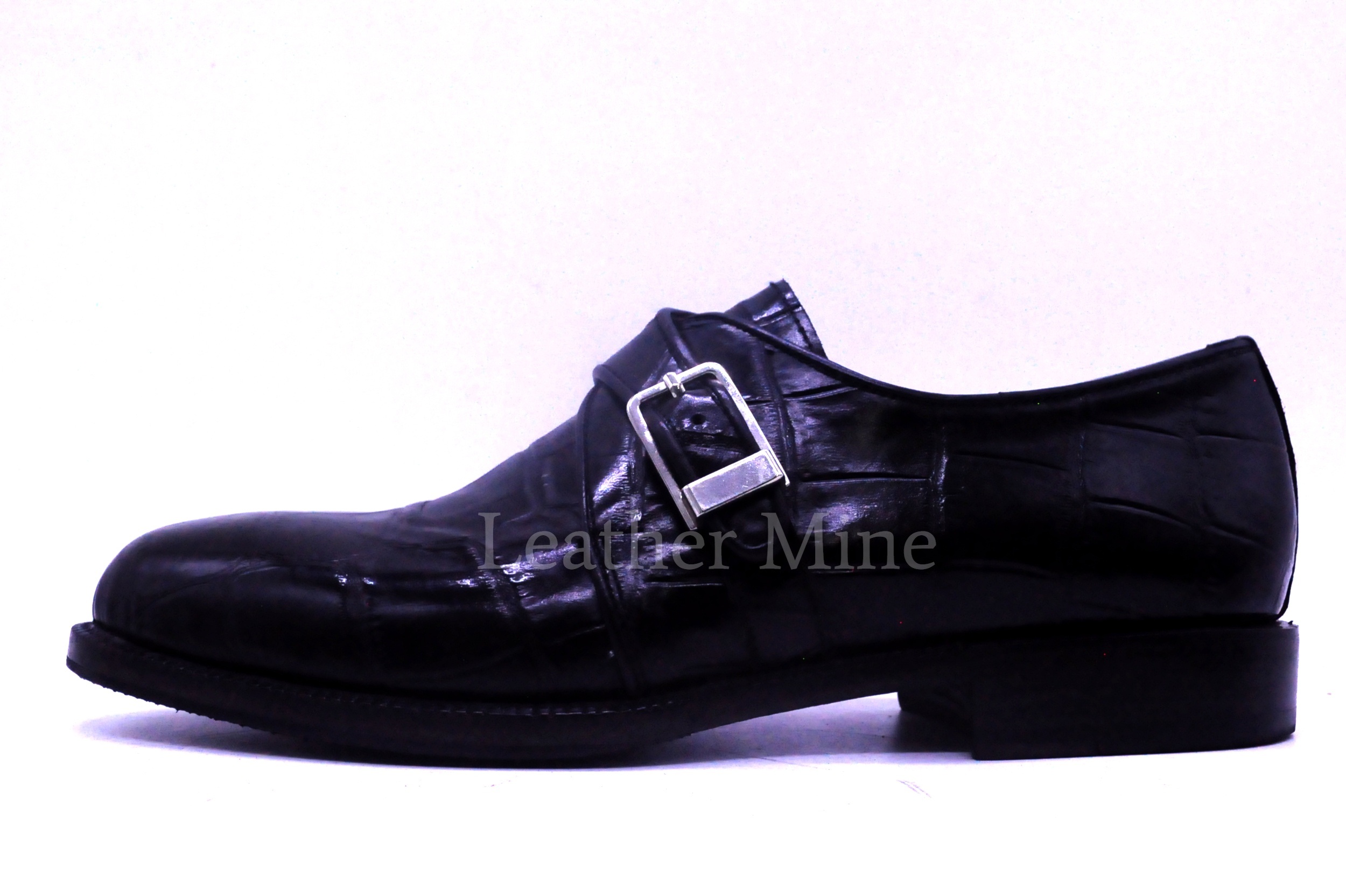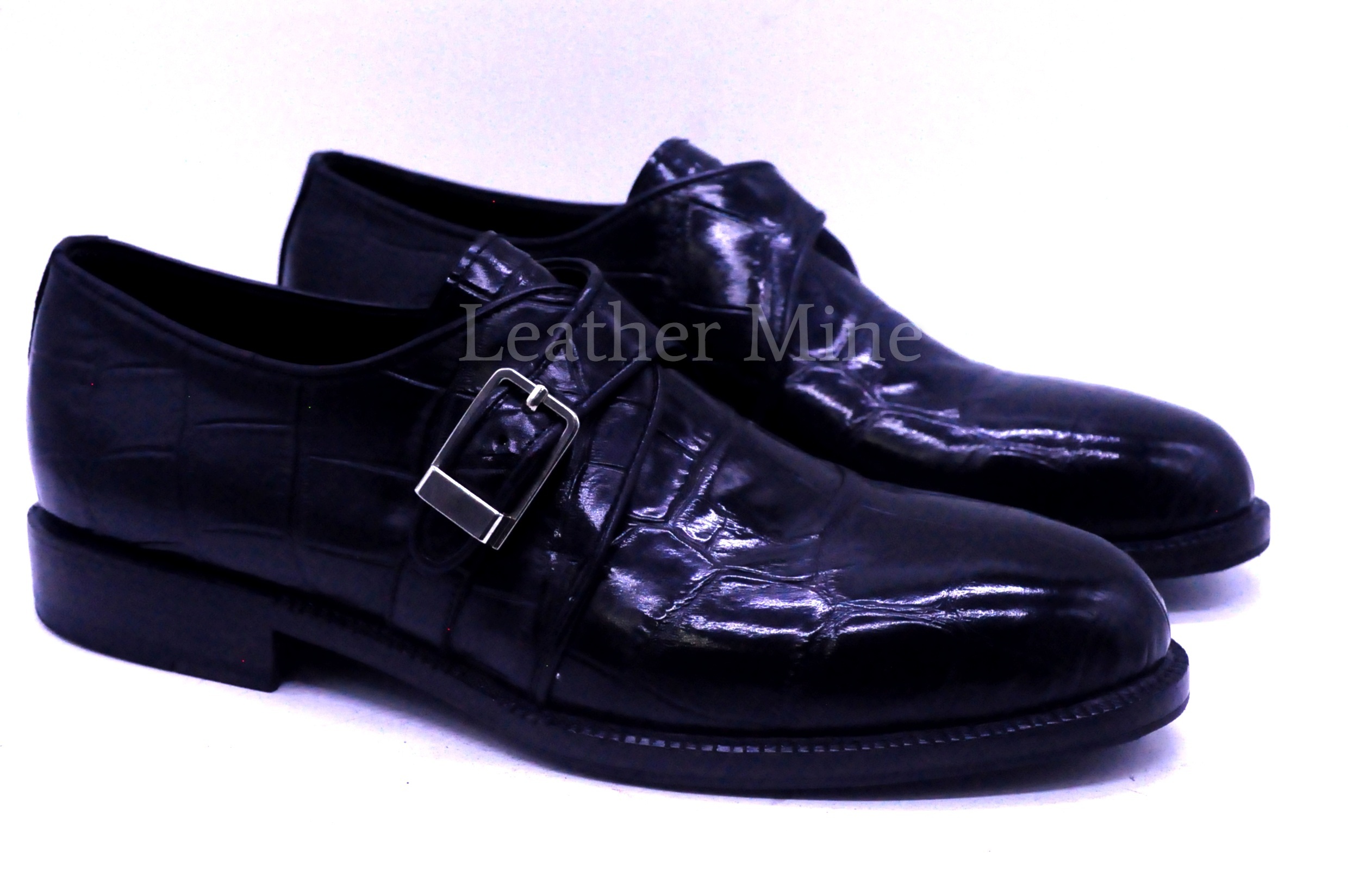 Leather Dress Shoes Men's Handmade Black Croc Monk Shoes