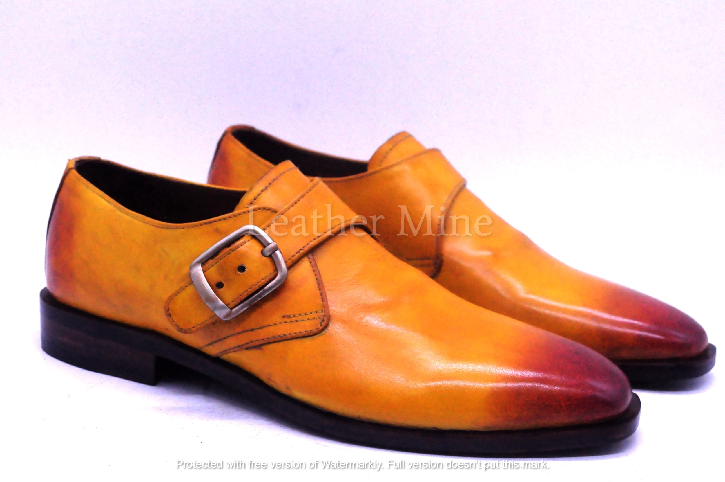 Best Handmade Leather Shoes For Men, Tan Patina Monk Shoes