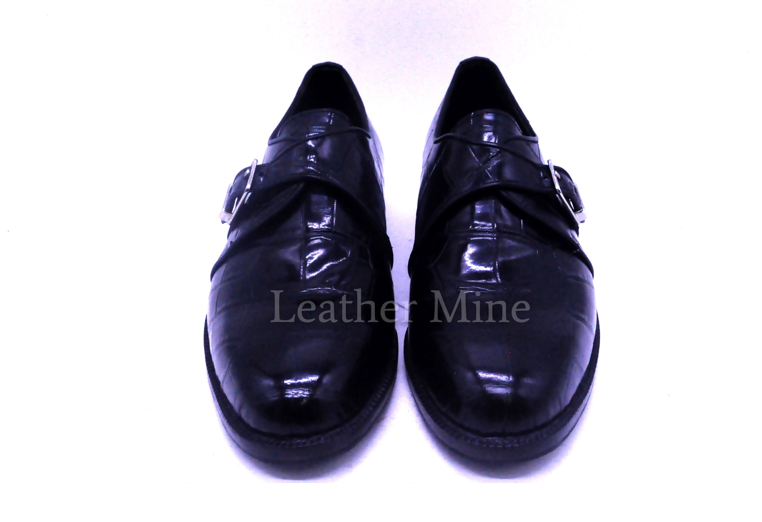 Best Handmade Leather Shoes For Men, Black Croc Monk Shoes