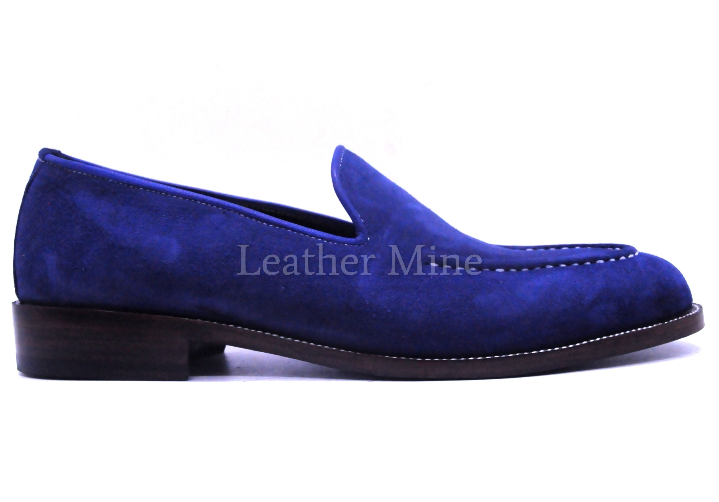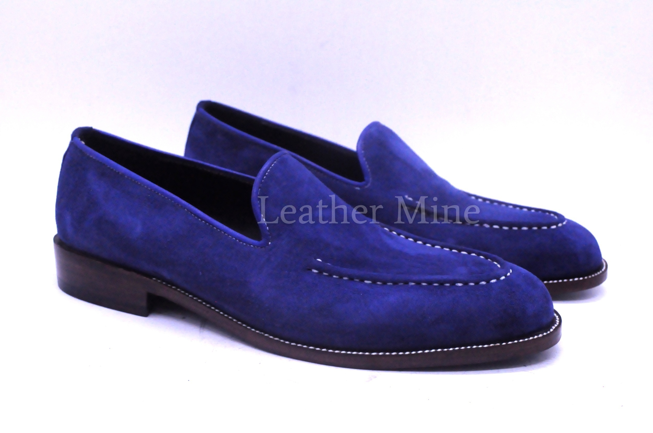 Handmade Men's Blue Suede Loafers Dress Shoes, Custom Made Shoes