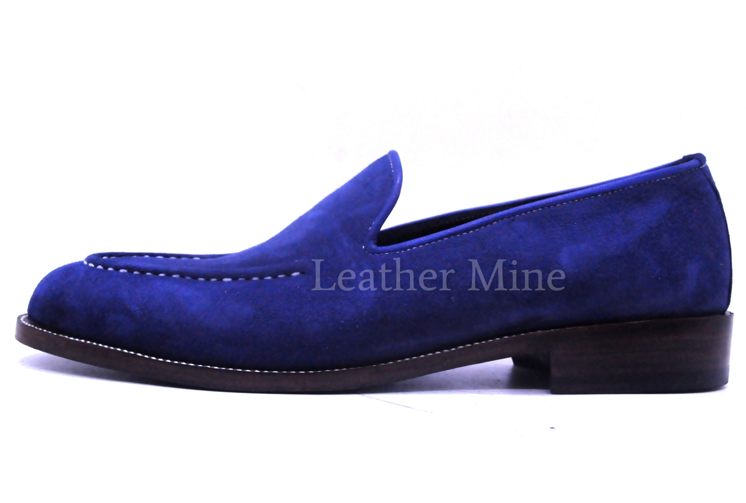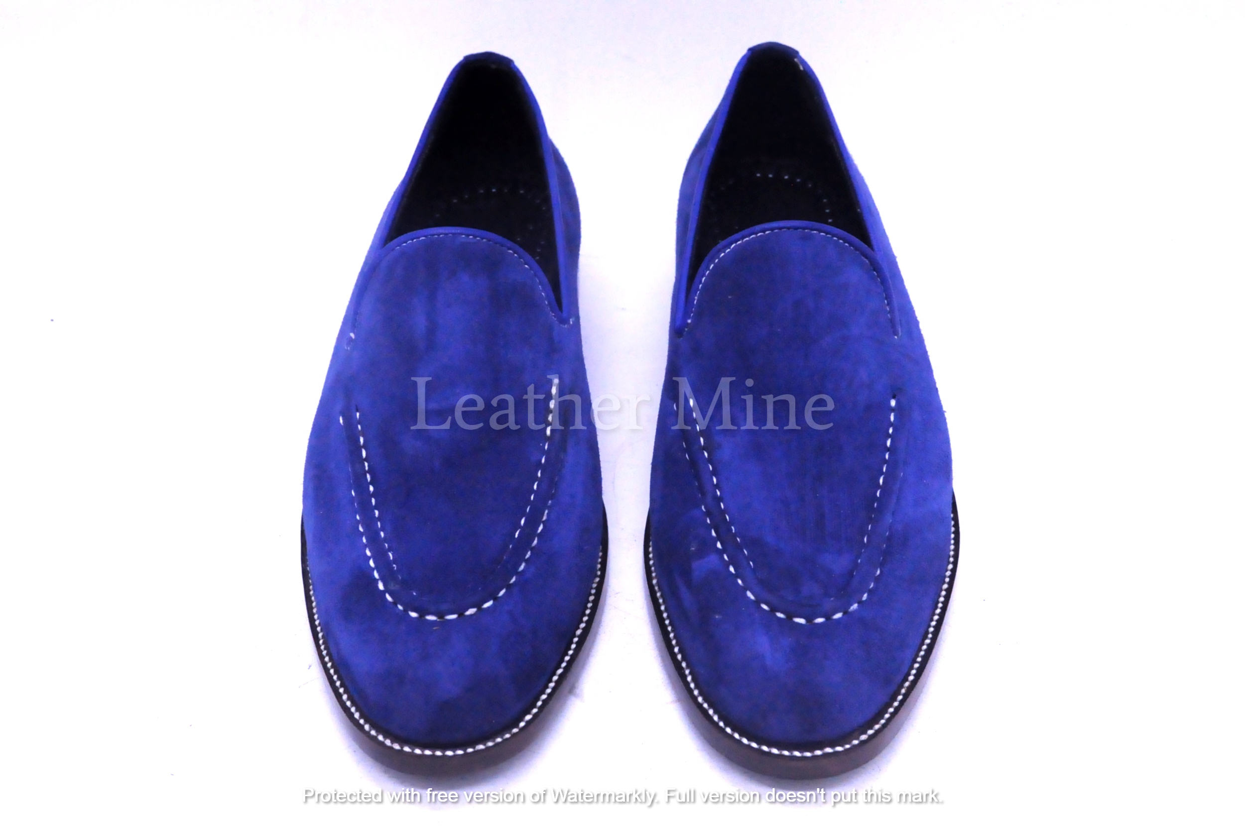 Leather Dress Shoes Men's Handmade Blue Suede Loafers Custom Shoes