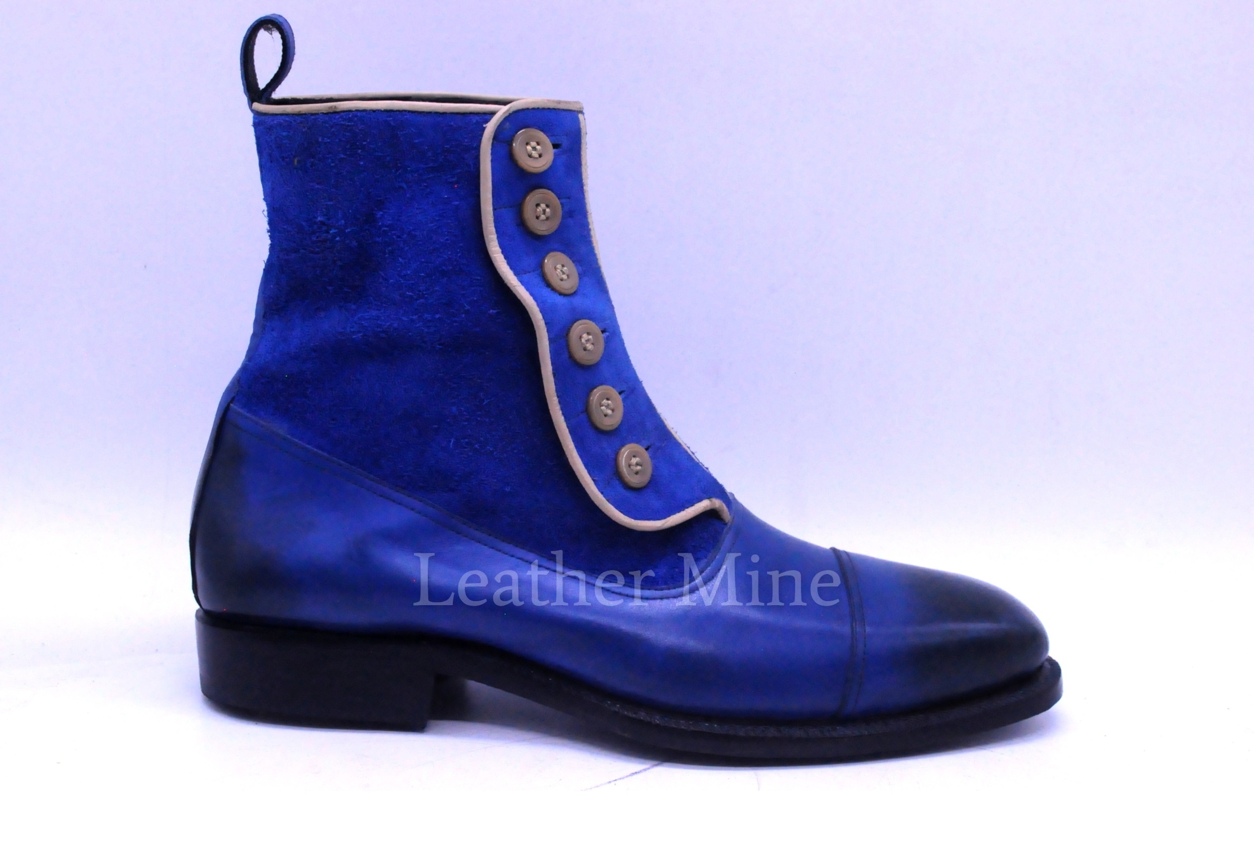 Handmade Men's Blue Button Dress Boots, Custom Made Boots