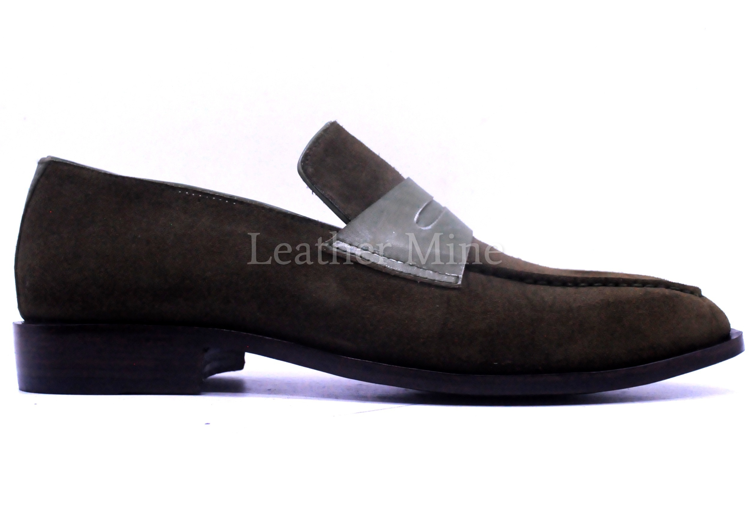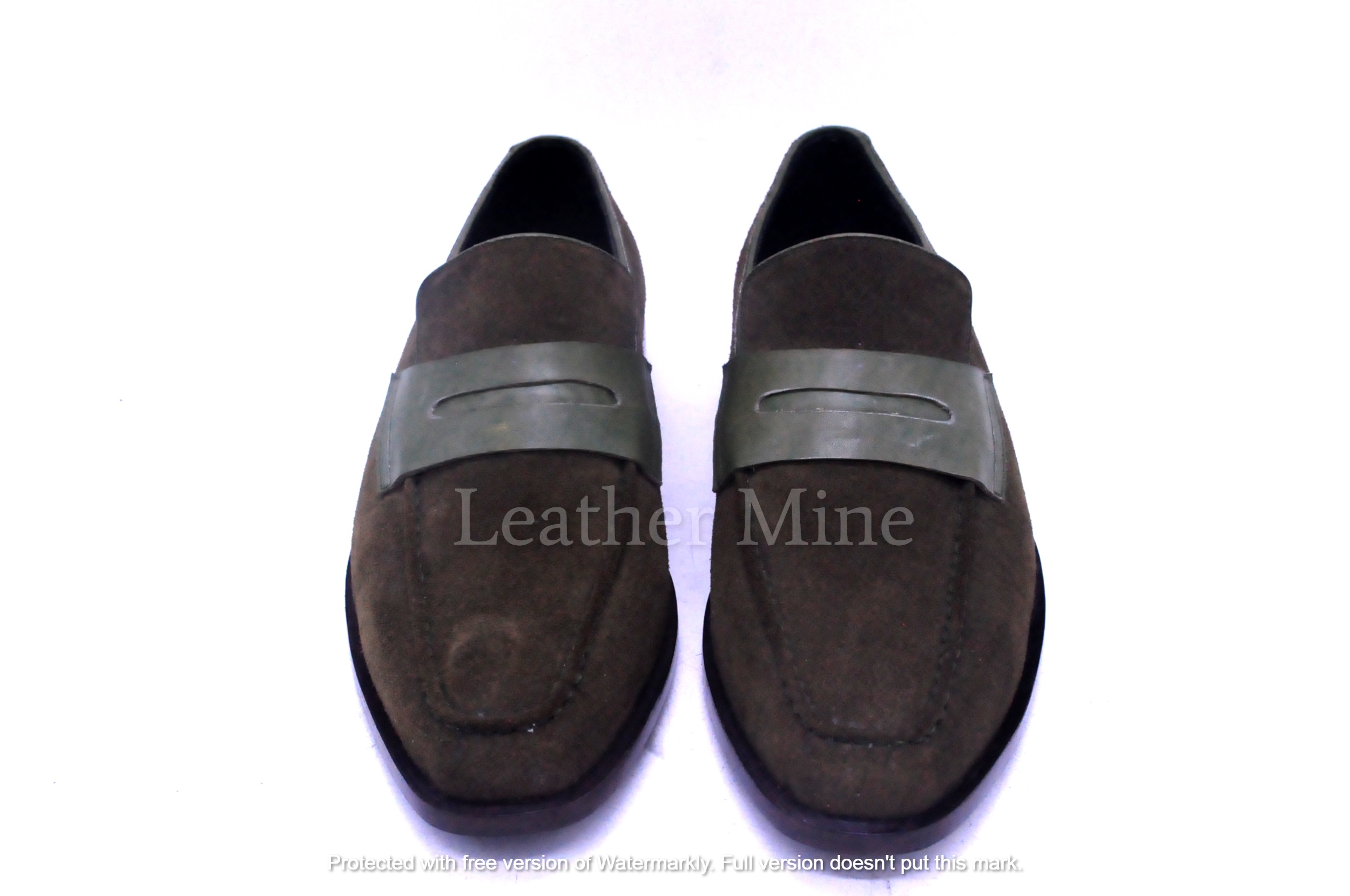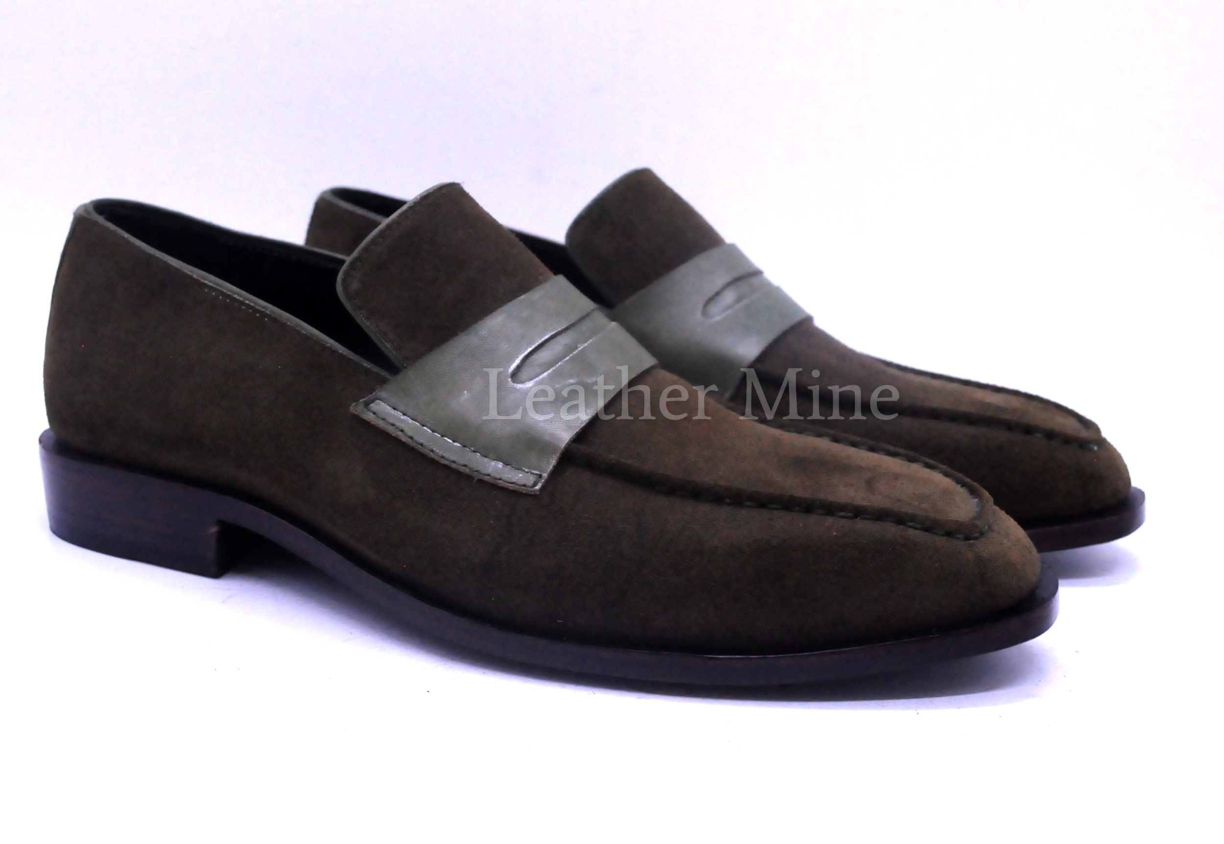 Handmade Men's Green Suede Loafers Dress Shoes, Custom Made Shoes