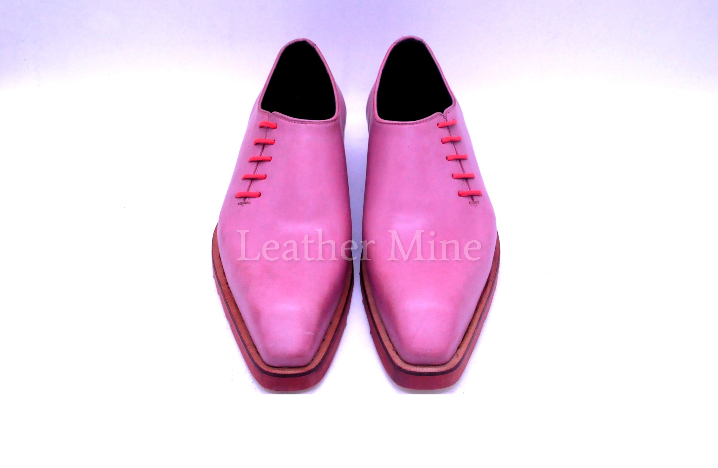 Leather Dress Shoes Men's Handmade Pink Patina Oxfords Custom Shoes