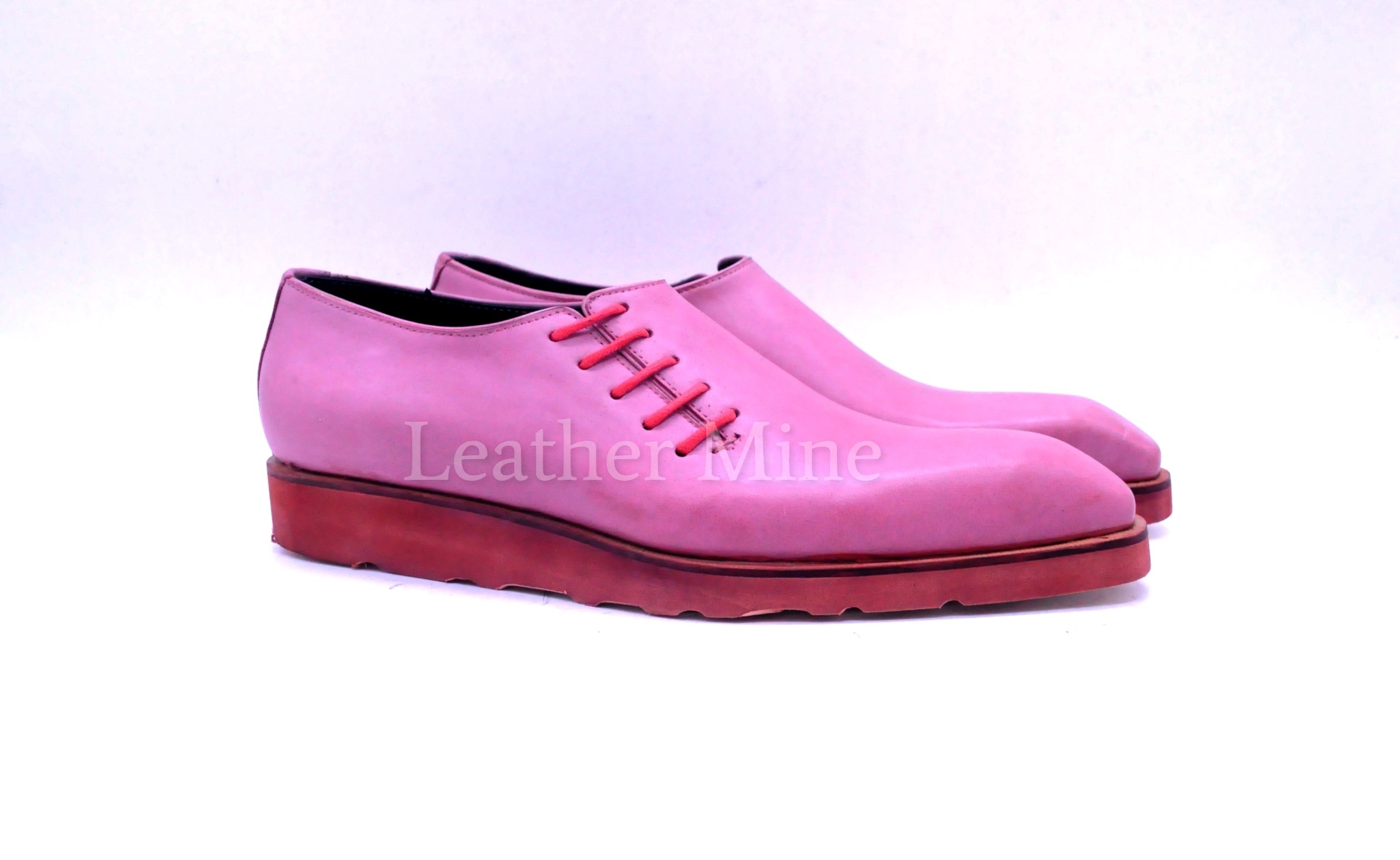 Best Handmade Leather Dress Shoes For Men, Pink Patina Oxfords Shoes