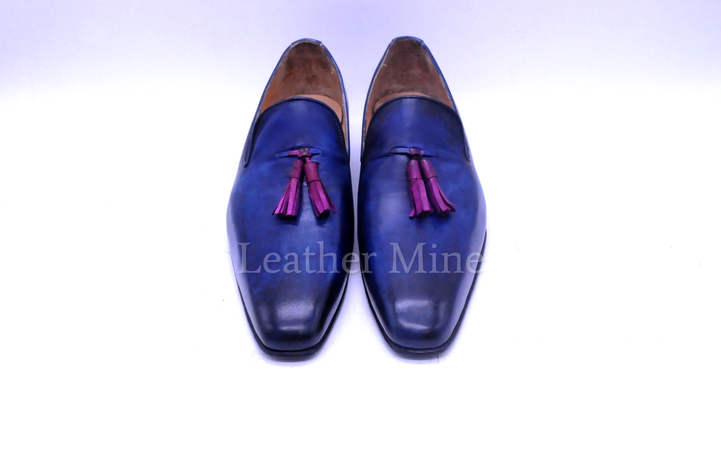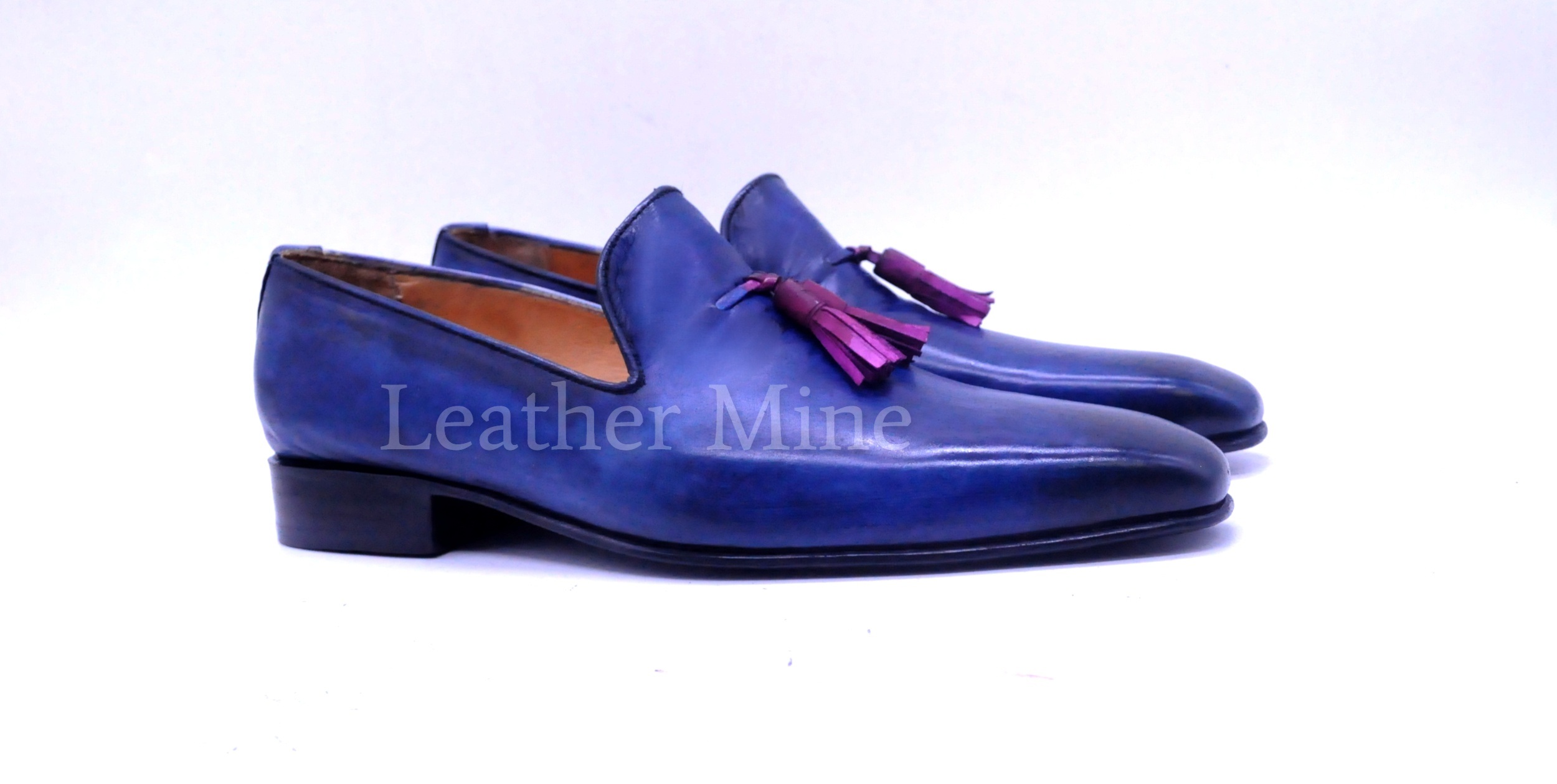 Men's Blue Patina Tassel Loafers Shoes, Handmade Genuine Leather Shoes