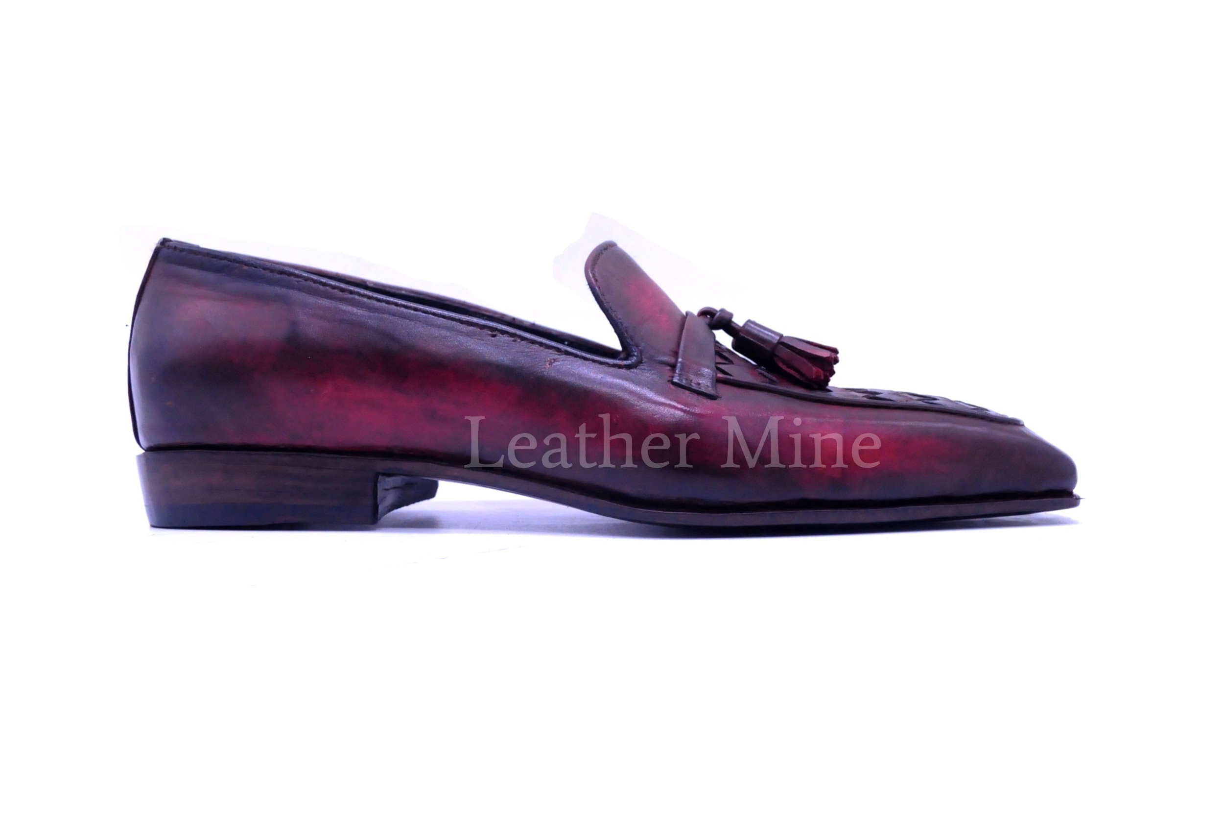 Handmade Men's Ox Blood Patina Tassel Loafers Dress Shoes, Custom Shoes