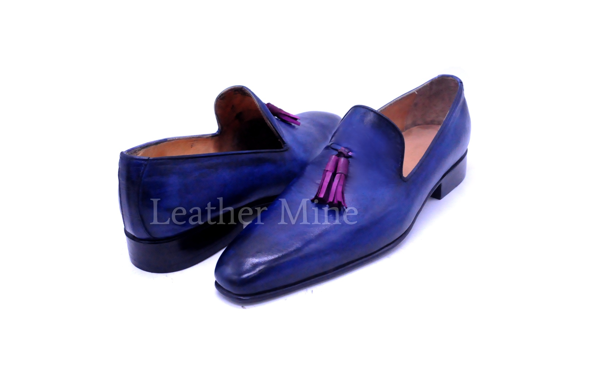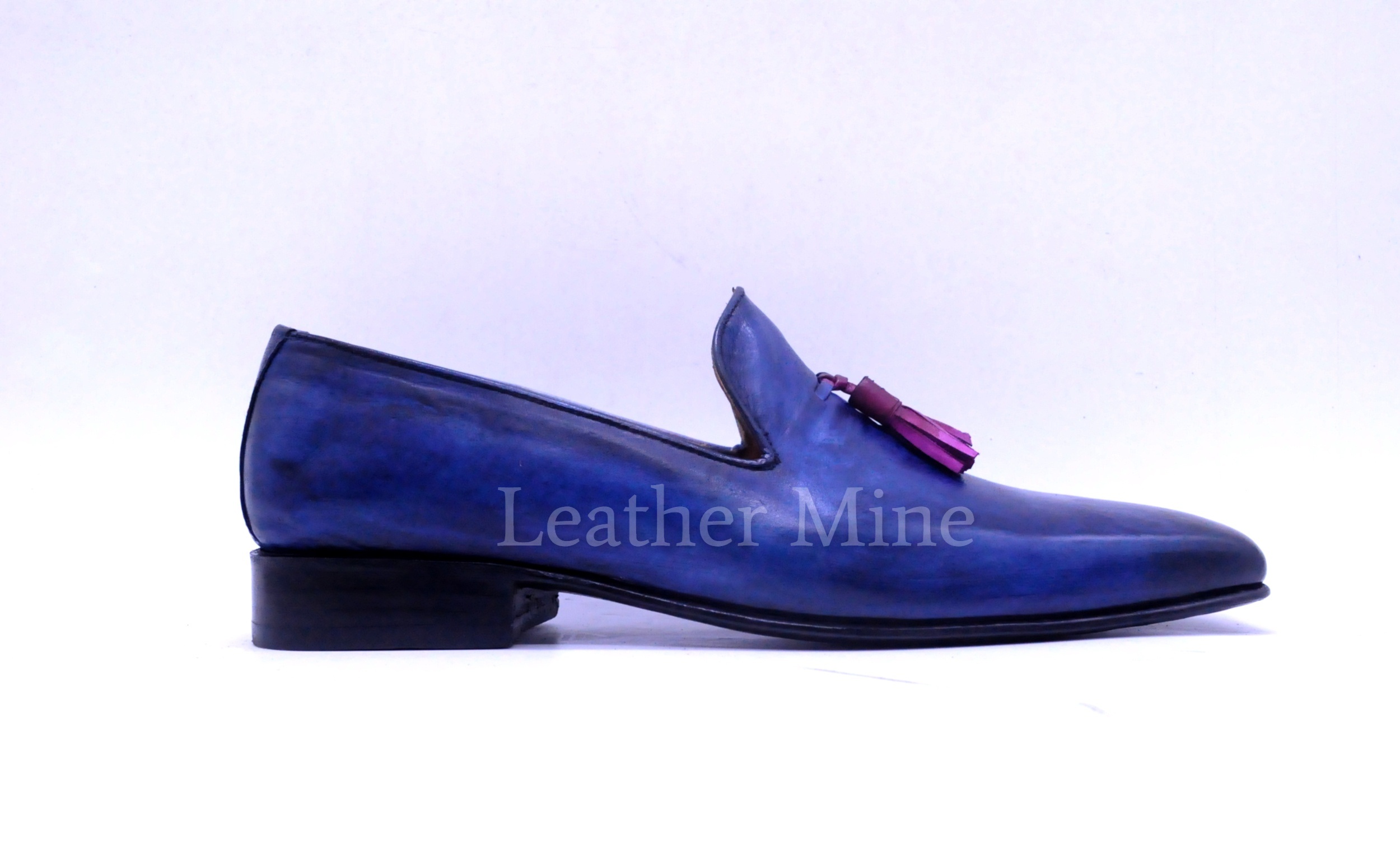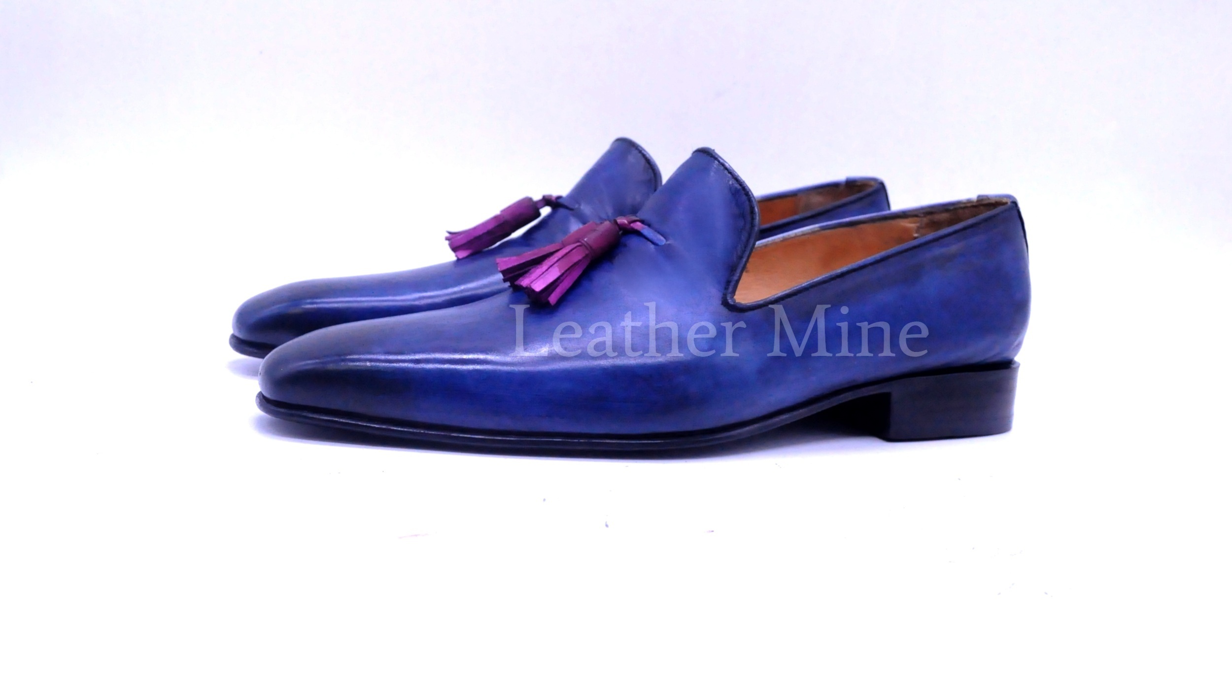 Handmade Men's Blue Patina Tassel Loafers Dress Shoes, Custom Shoes
