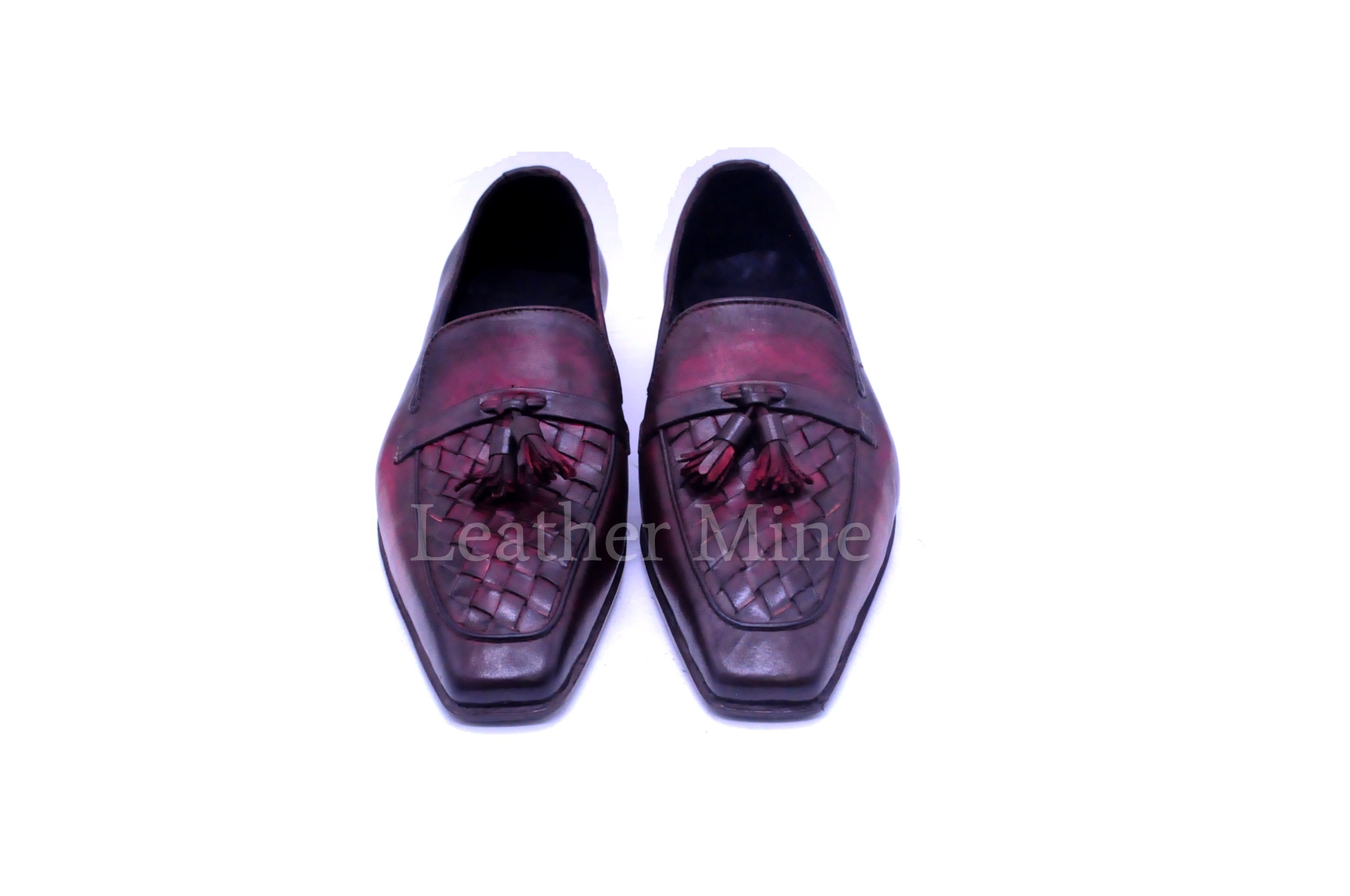 Ox Blood Patina Tassel Loafers Dress Shoes Men, Handmade Leather Shoes