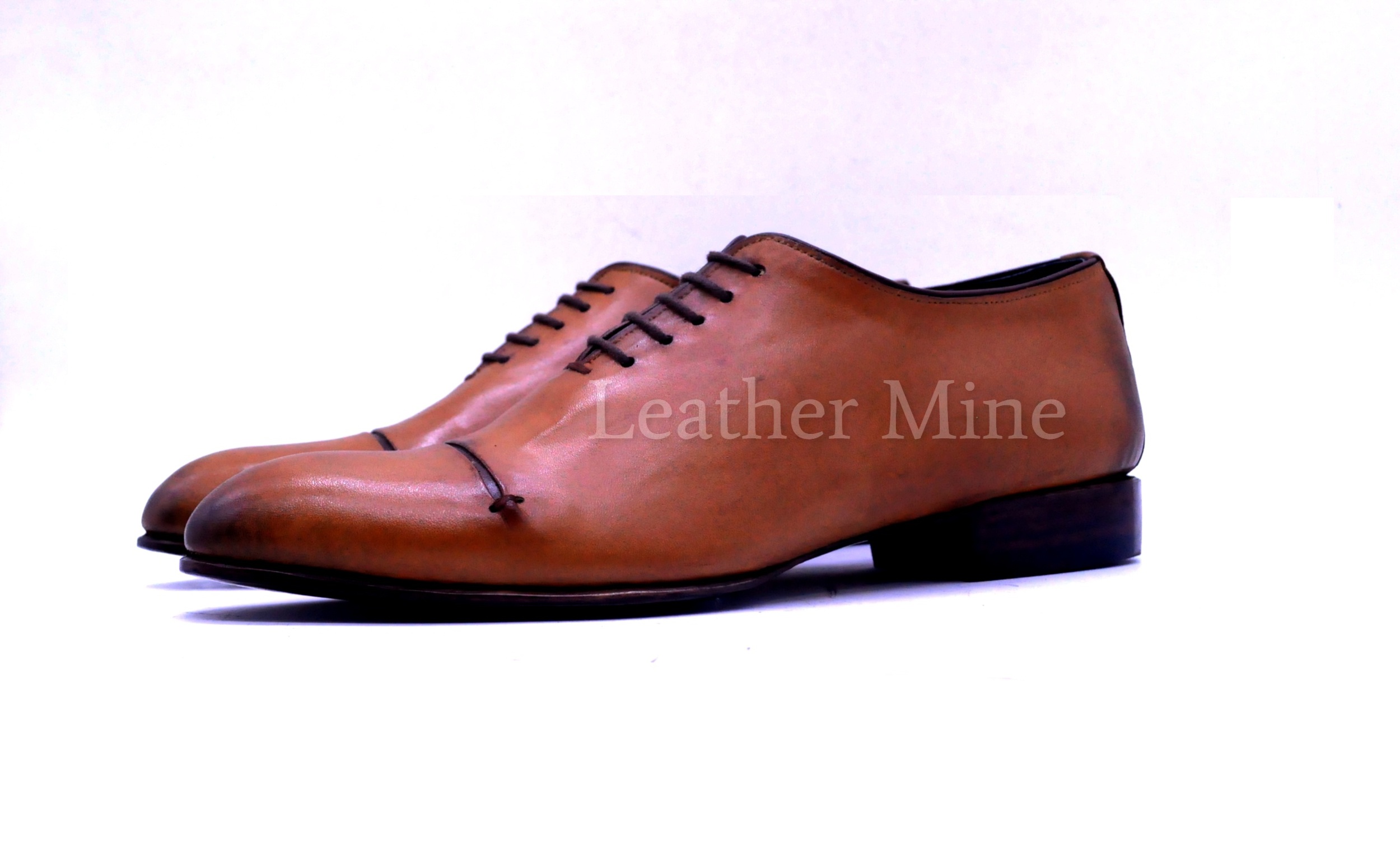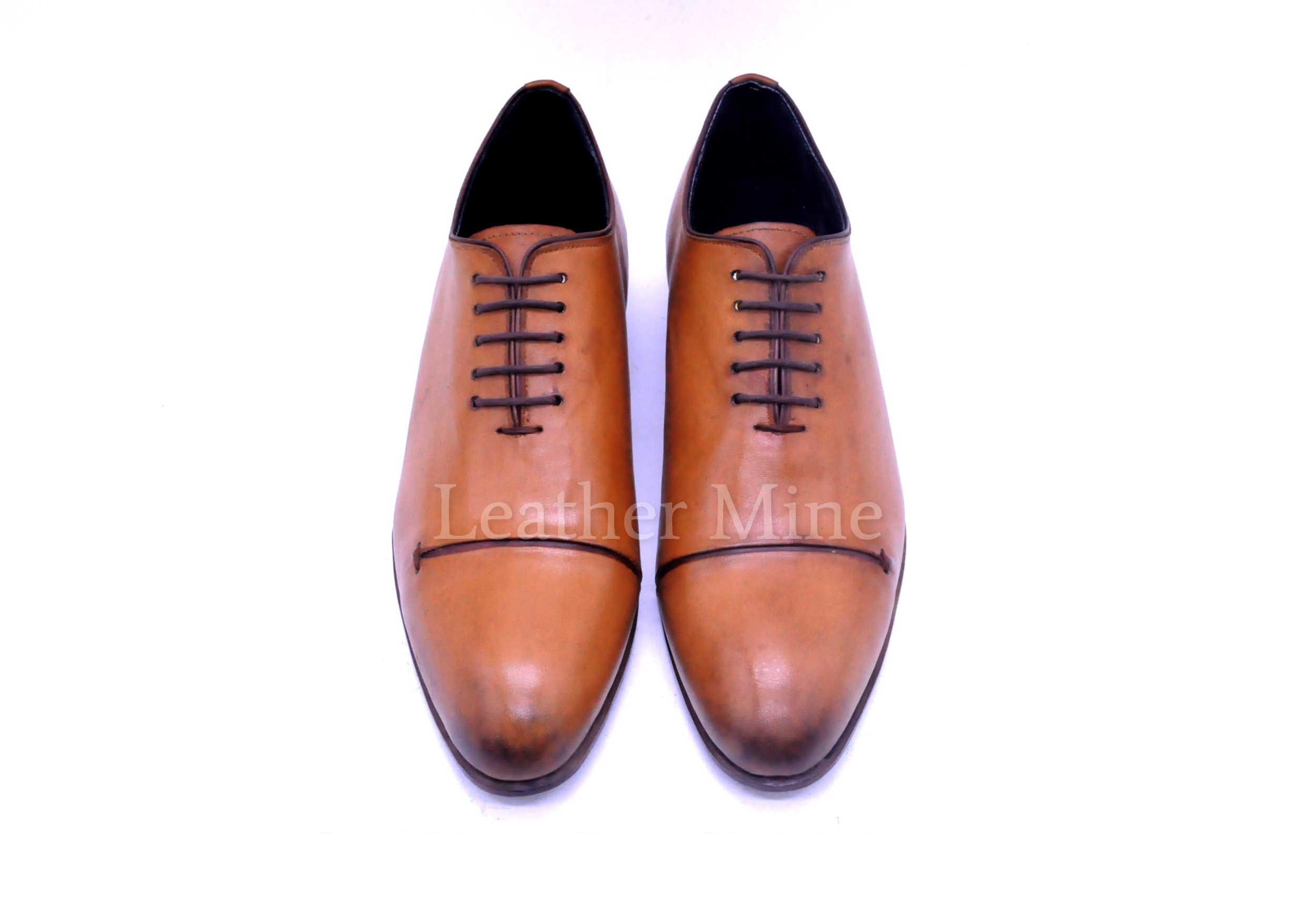 Men's Tan Patina Oxfords Shoes, Handmade Genuine Leather Formal Shoes