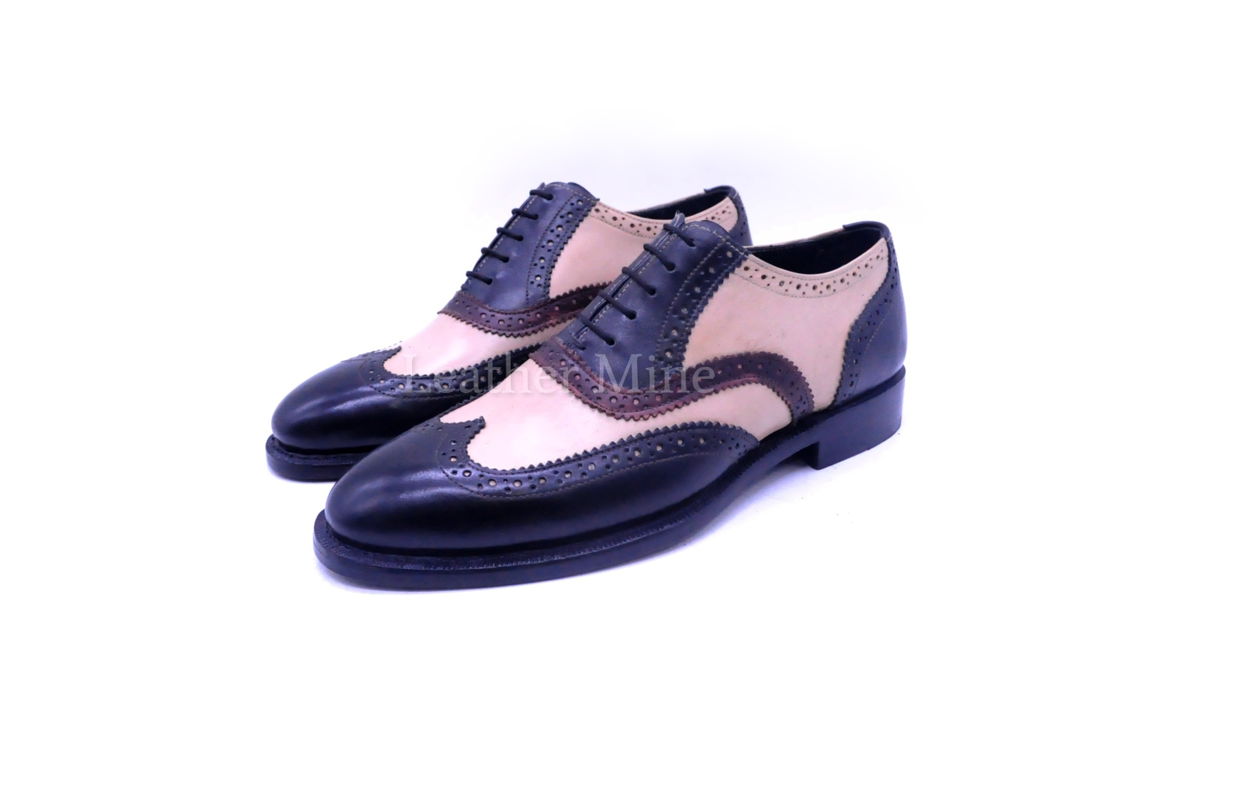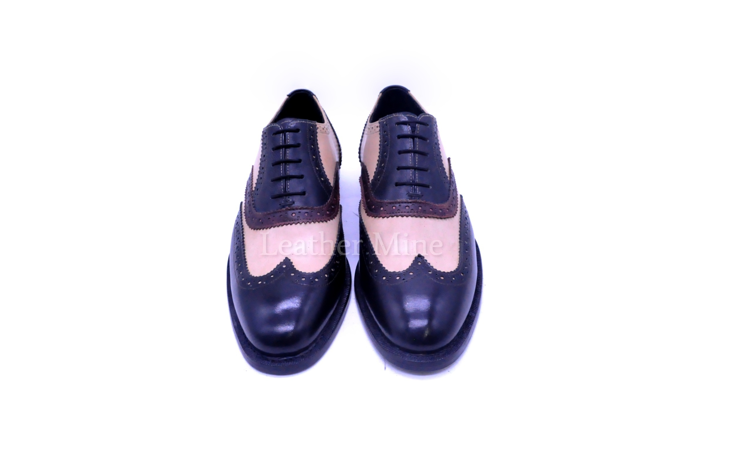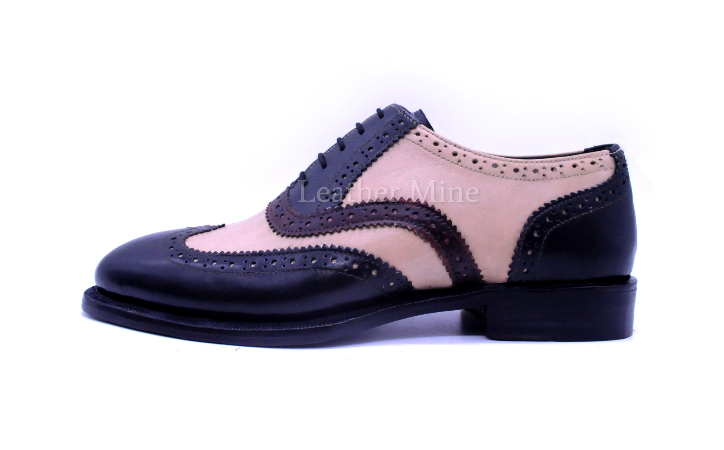 Handmade Two Tone Brogue Dress Shoes, Genuine Leather Formal Shoes