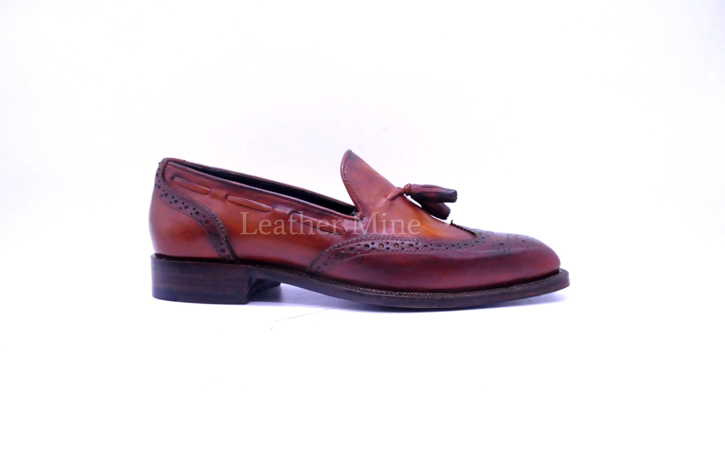 Tan Patina Loafers Dress Shoes For Men, Genuine Leather Custom Shoes