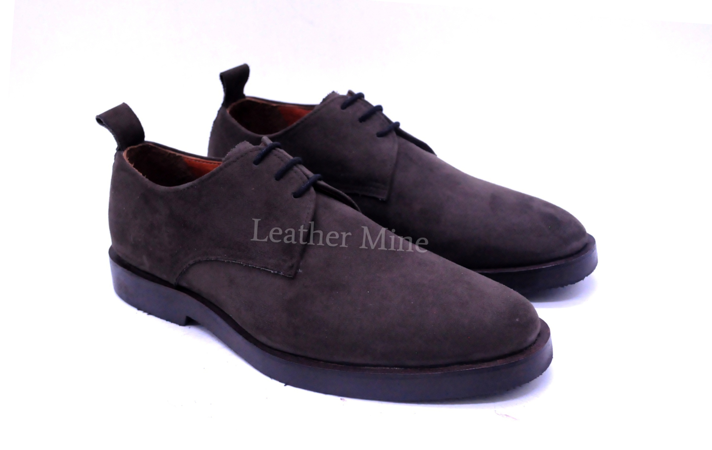 Brown Suede Derby Dress Shoes For Men, Genuine Leather Custom Shoes