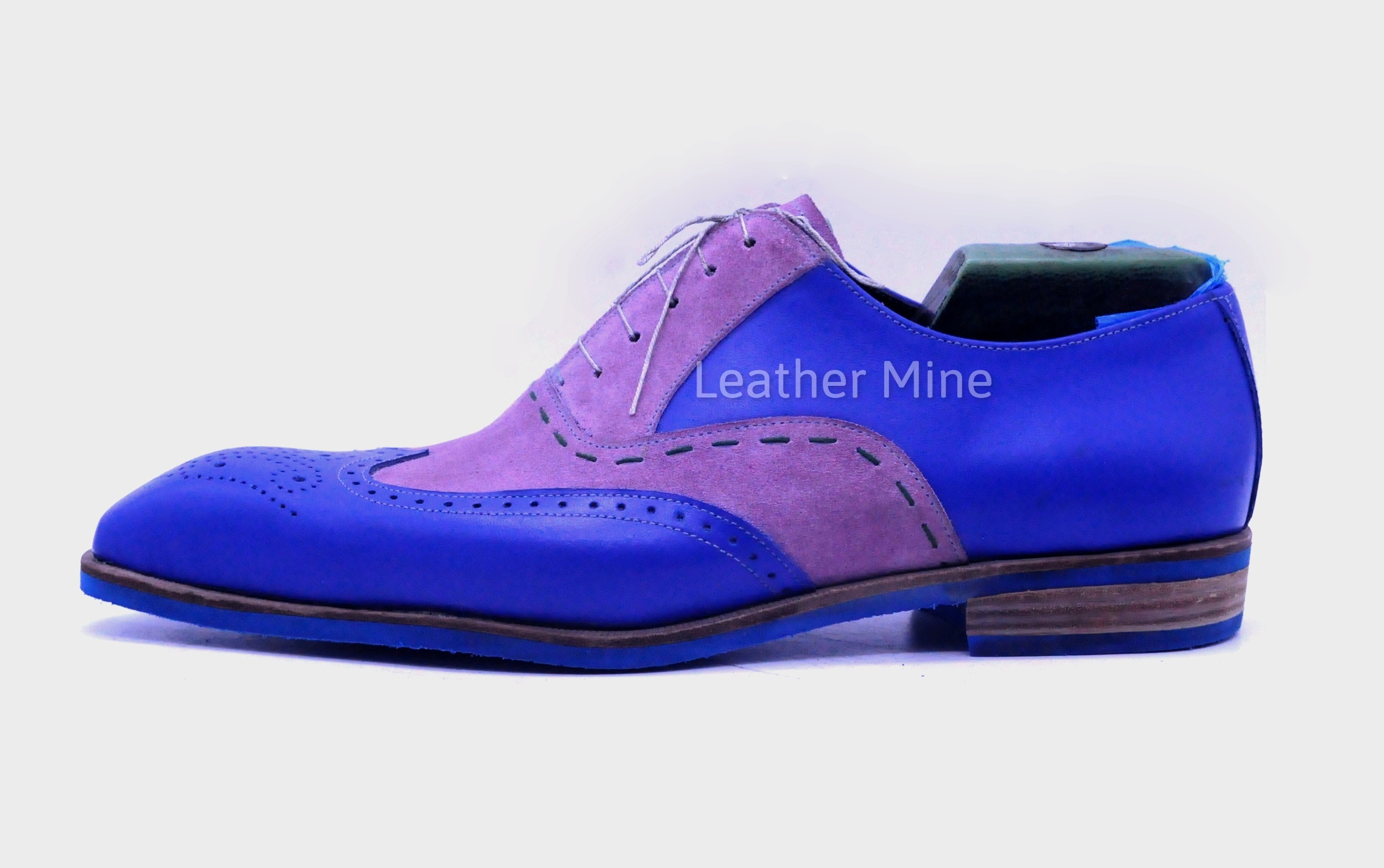 Handmade Blue Wingtip Dress Shoes, Genuine Leather Formal Shoes