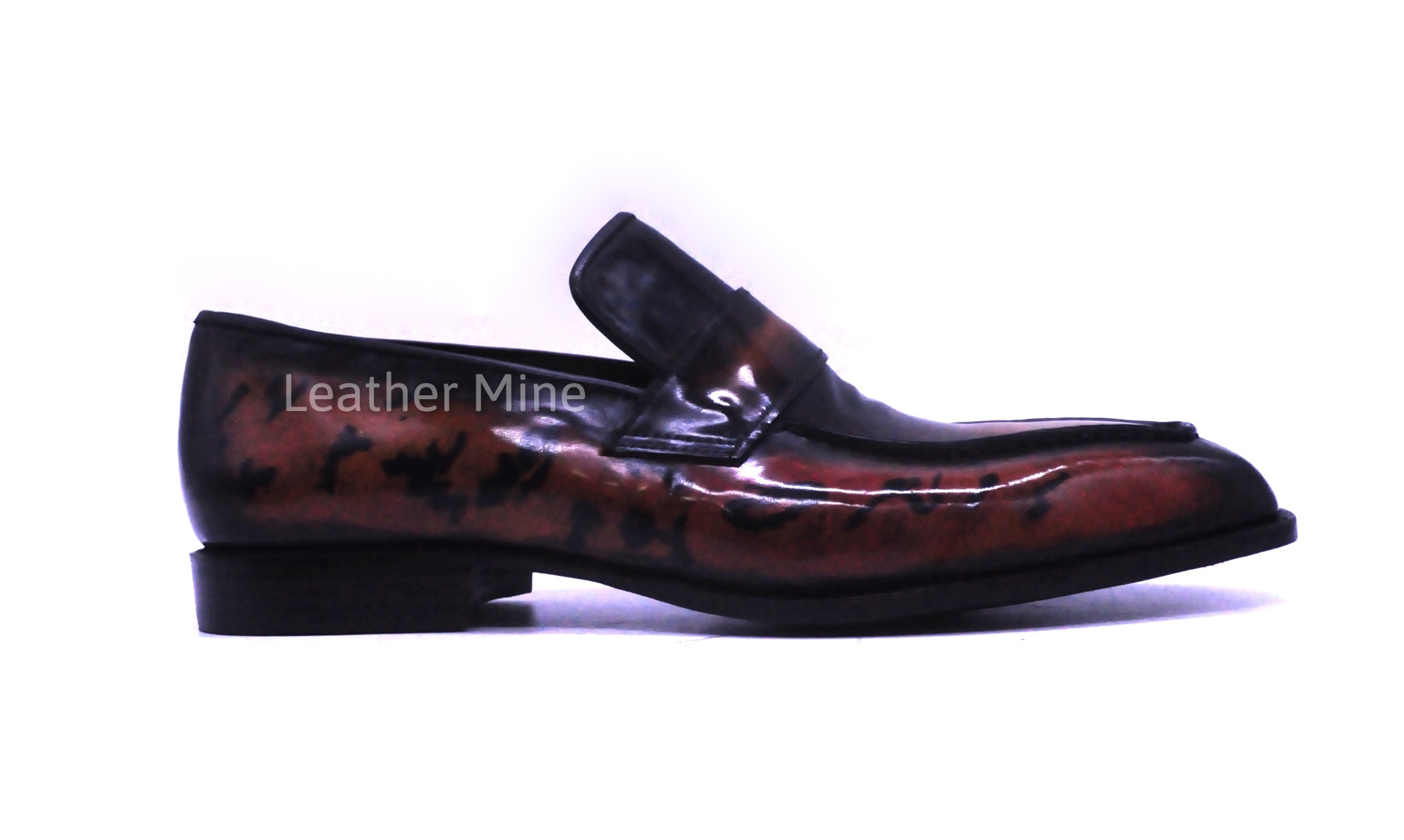 Leather Dress Shoes Men's Handmade Tan Patina Loafers Formal Shoes
