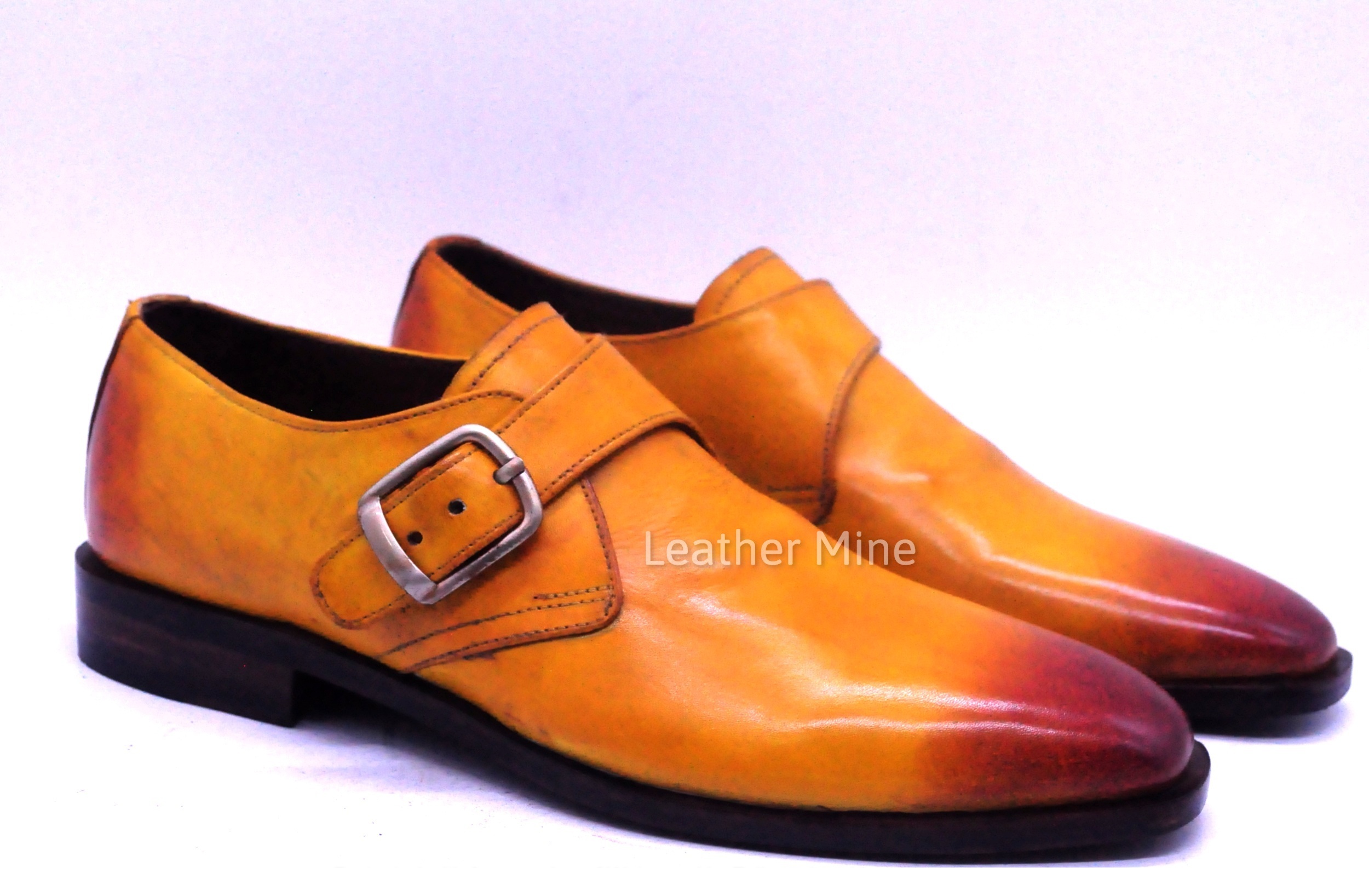Tan Patina Monk Dress Shoes For Men, Genuine Leather Shoes