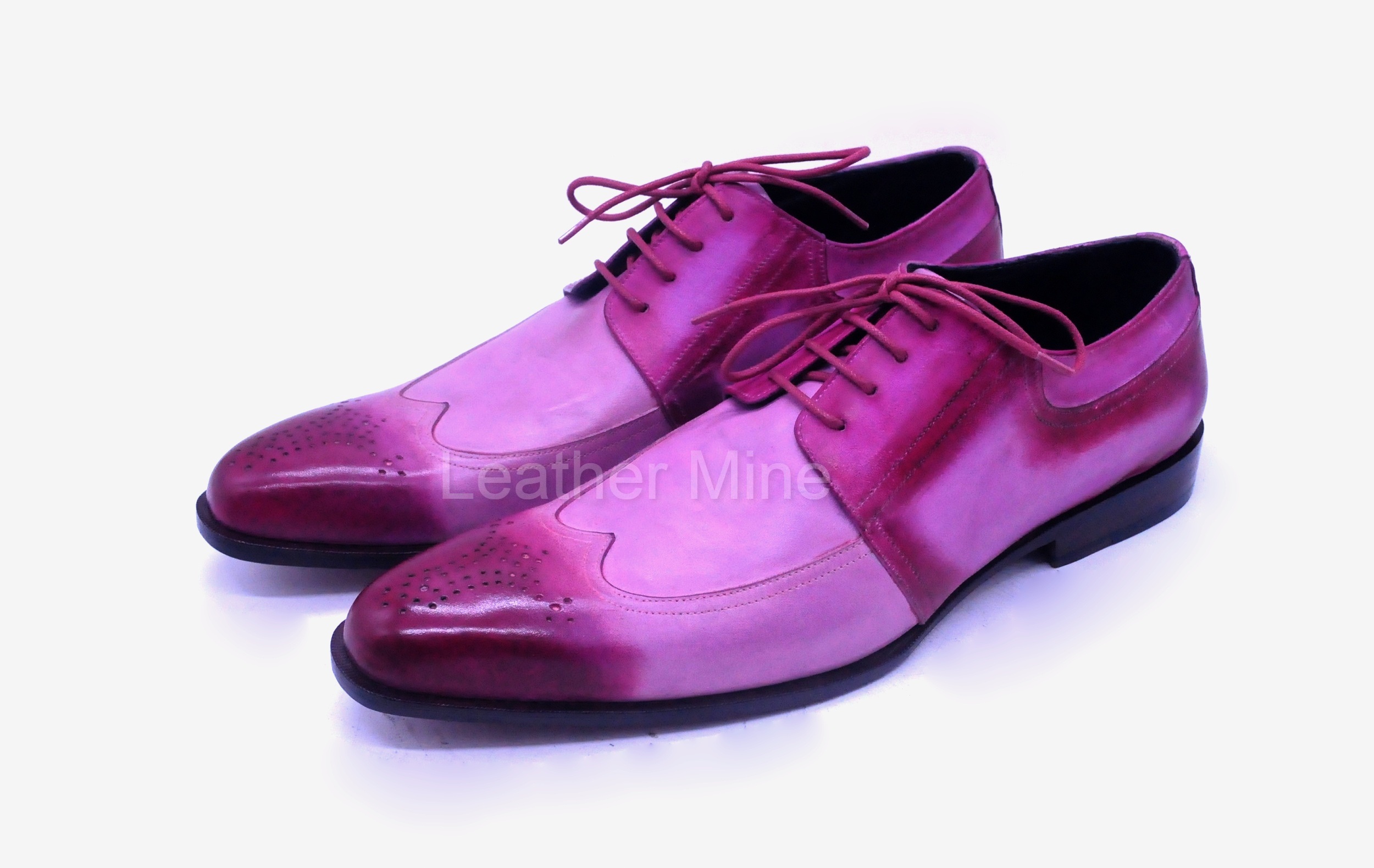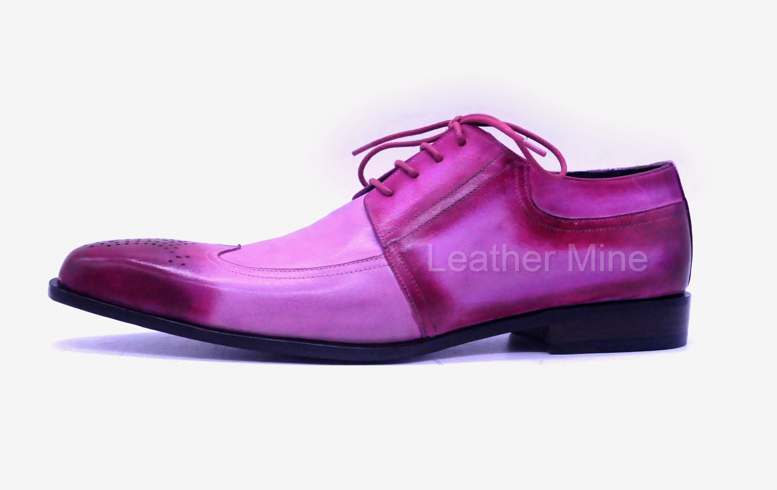 Handmade Pink Patina Derby Dress Shoes, Genuine Leather Formal Shoes