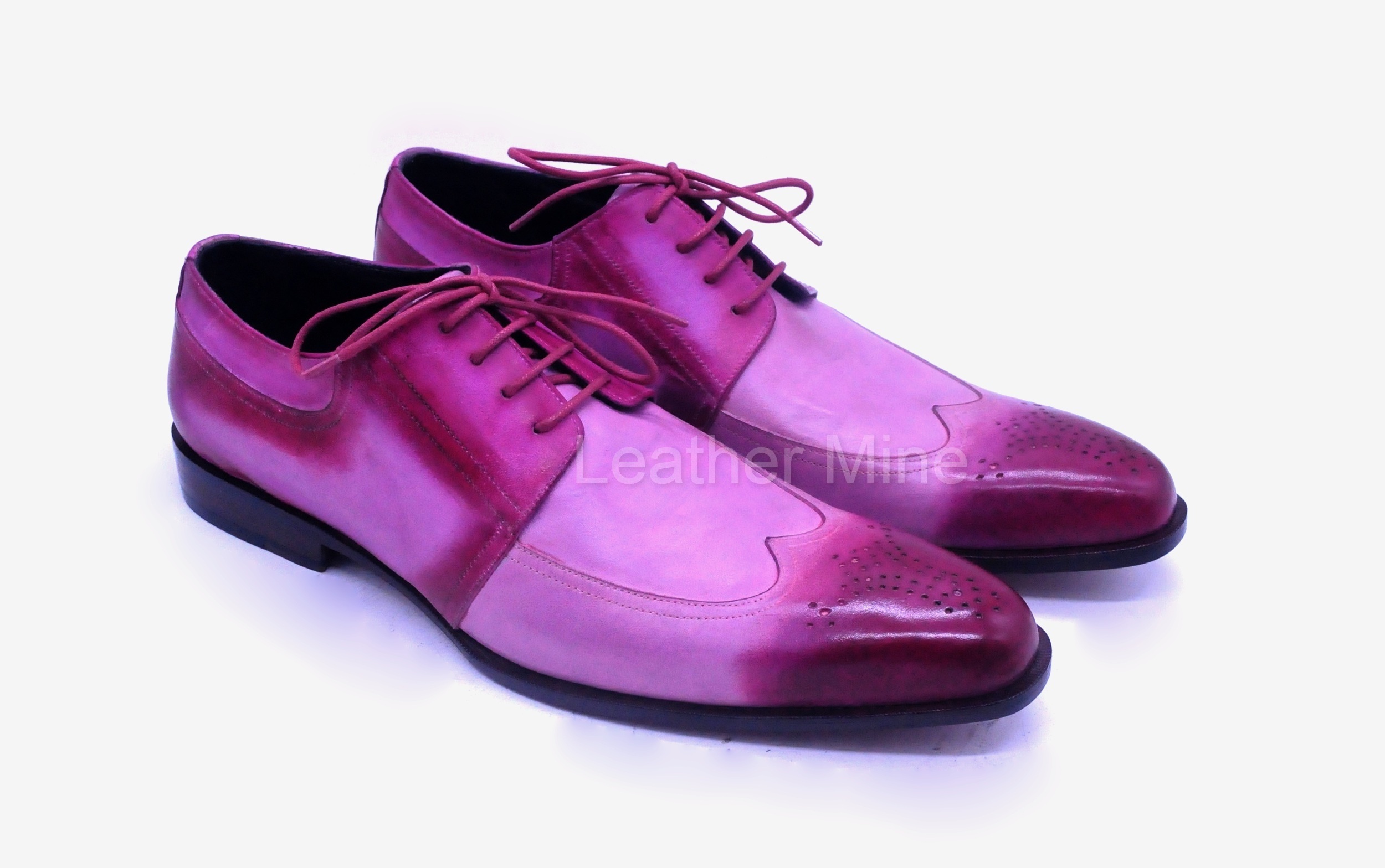 Pink Patina Derby Leather shoes Men's, Handmade Formal Custom Shoes