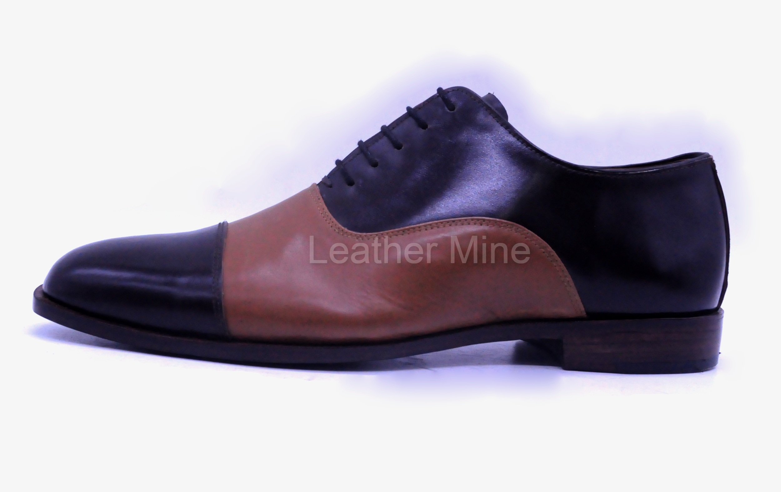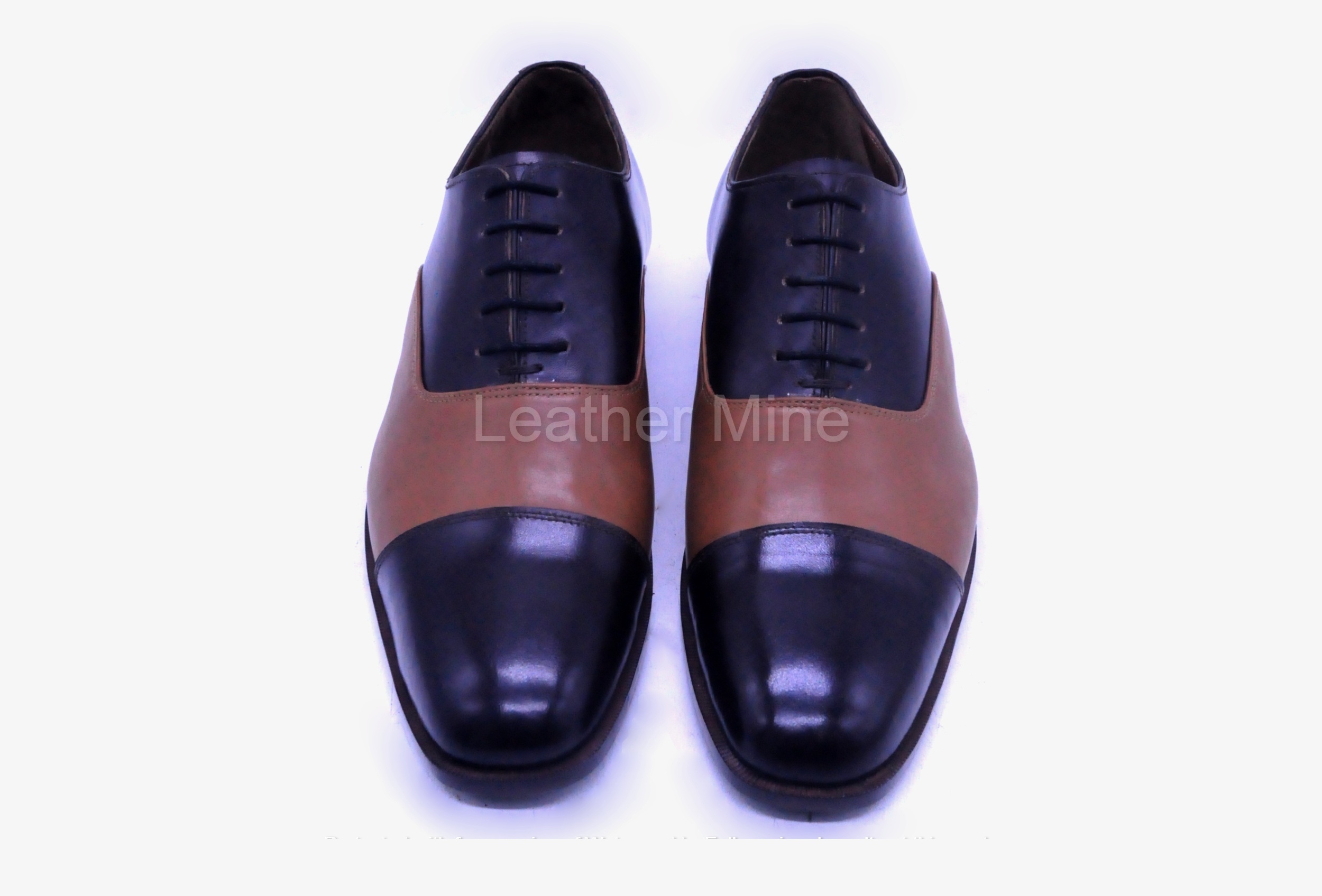 Handmade Black Toe Cap Dress Shoes, Genuine Leather Formal Shoes